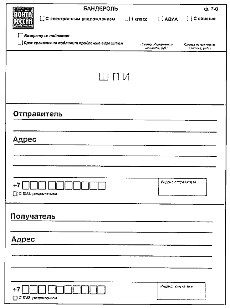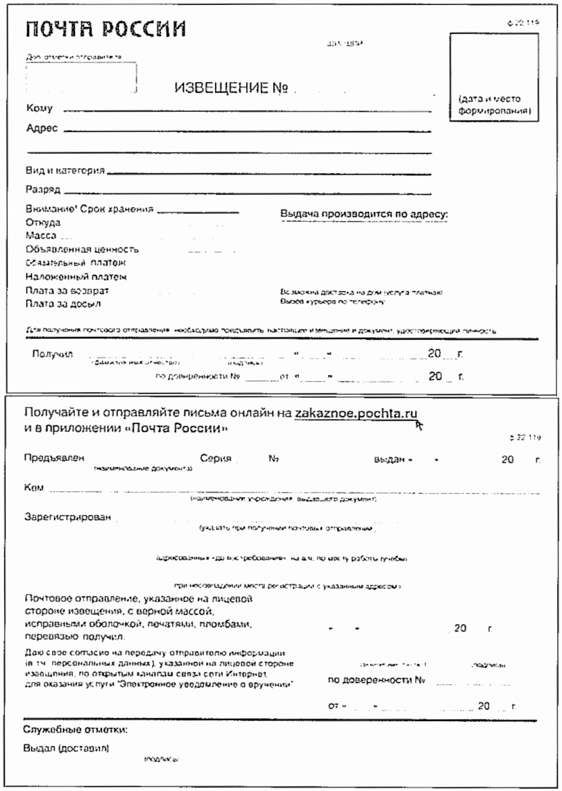 ф. 22/119 на поступившие отправления не подлежат печати и доставке почтальонами.