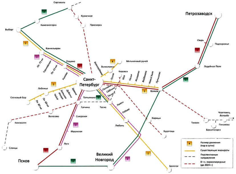 Протяженность железных дорог на территории Ленинградской области превышает 2,5 тыс. км, основные направления движения поездов - соседние регионы Российской Федерации, а также страны ЕС (Финляндская Республика, Эстонская Республика).