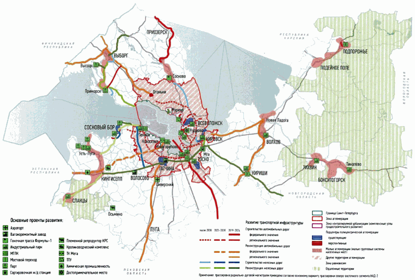 реализация на территории Ленинградской области инфраструктурных проектов федерального значения.