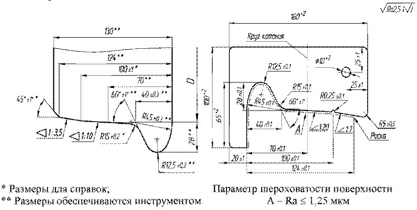 1.2.5 типа РУ1-950-Г (устаревший тип, находящийся в эксплуатации) с буксовыми узлами, оборудованными сдвоенными подшипниками в габаритах 130 x 250 x 160 мм;