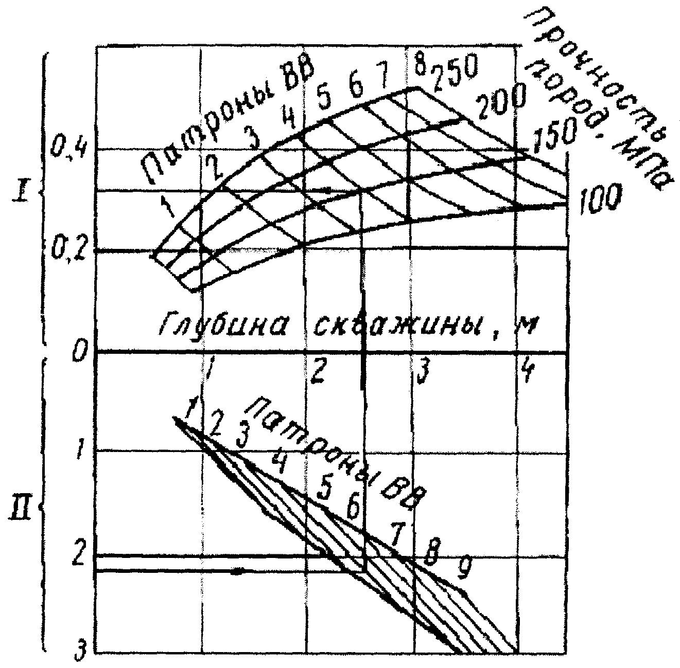 ориентировочные параметры камуфлетного взрывания ряда шпуров определяются с помощью номограммы (рисунок 12), если они не регламентированы Указаниями;