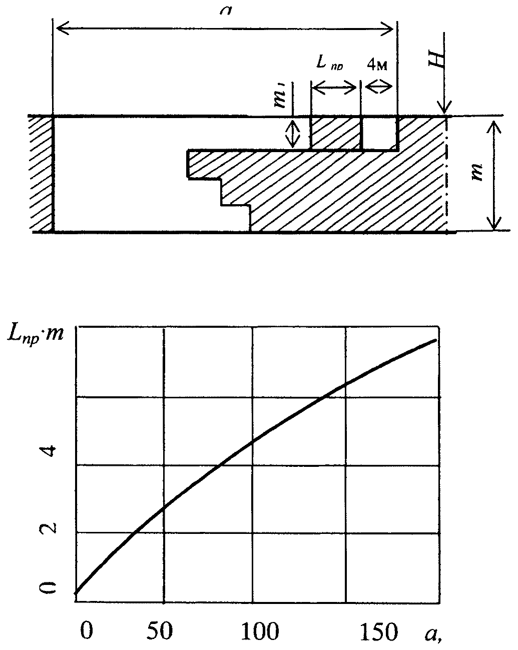 для создания защитной зоны в призабойной части очистных и подготовительных выработок глубина шпуров (скважин) должна быть не менее n + b, где n - минимально допустимая ширина защитной зоны, b - подвигание забоя за цикл или несколько циклов проходки.