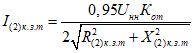- расчетный минимальный ток двухфазного к.з. на вторичной обмотке трансформатора, приведенного к первичной стороне (А), определяется по