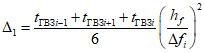 где tГВЗi-1, tГВЗi, tГВЗi+1 - значения ГВЗ, измеренные на равноотстоящих частотах fi+1, fi, fi-1, мкс;