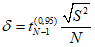 t - табличное значение t-критерия Стьюдента со степенью свободы N-1, отвечающее 95%-й вероятности. Для группы из 10 экспертов, в частности, t = 2,262157158.