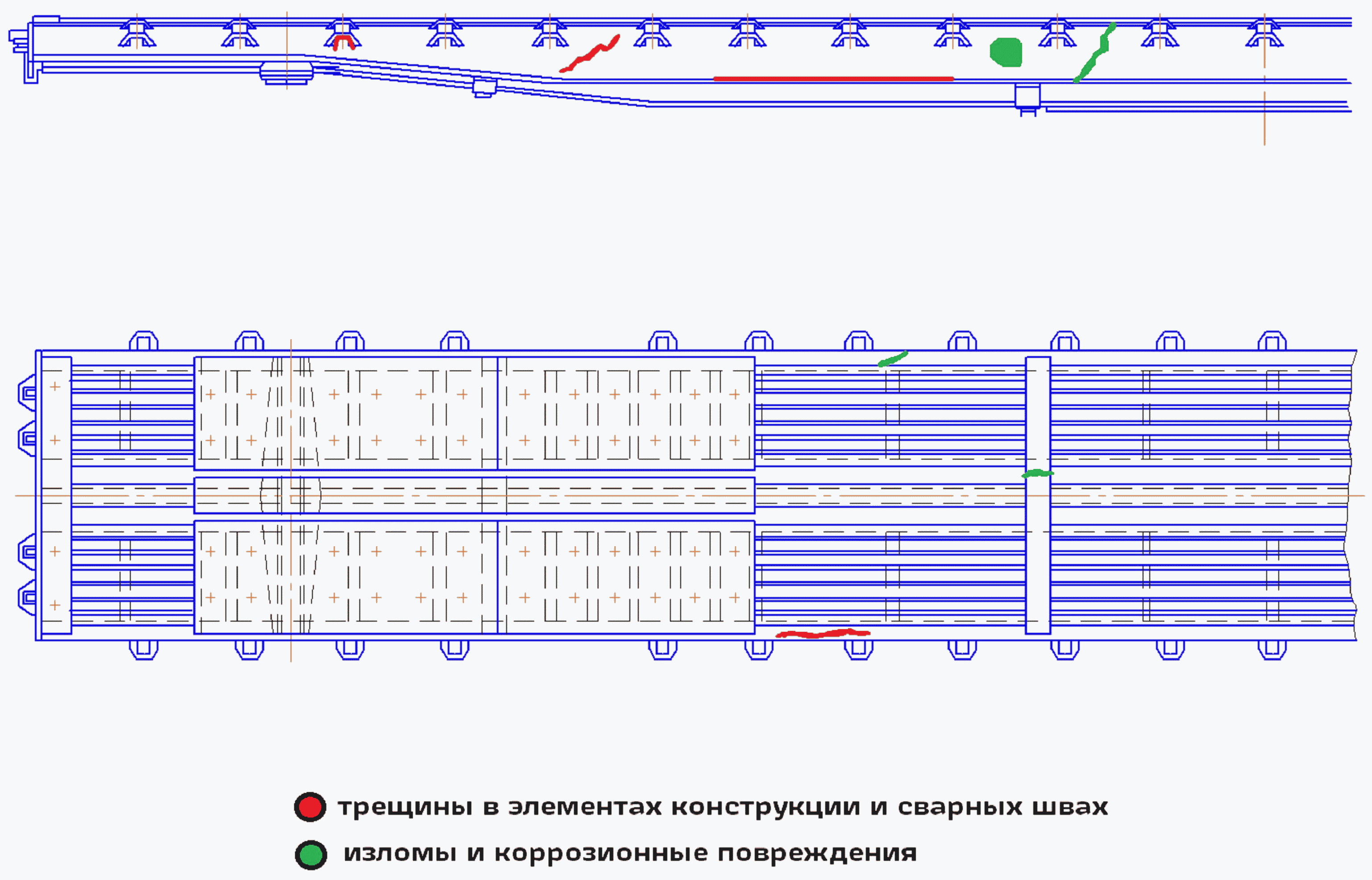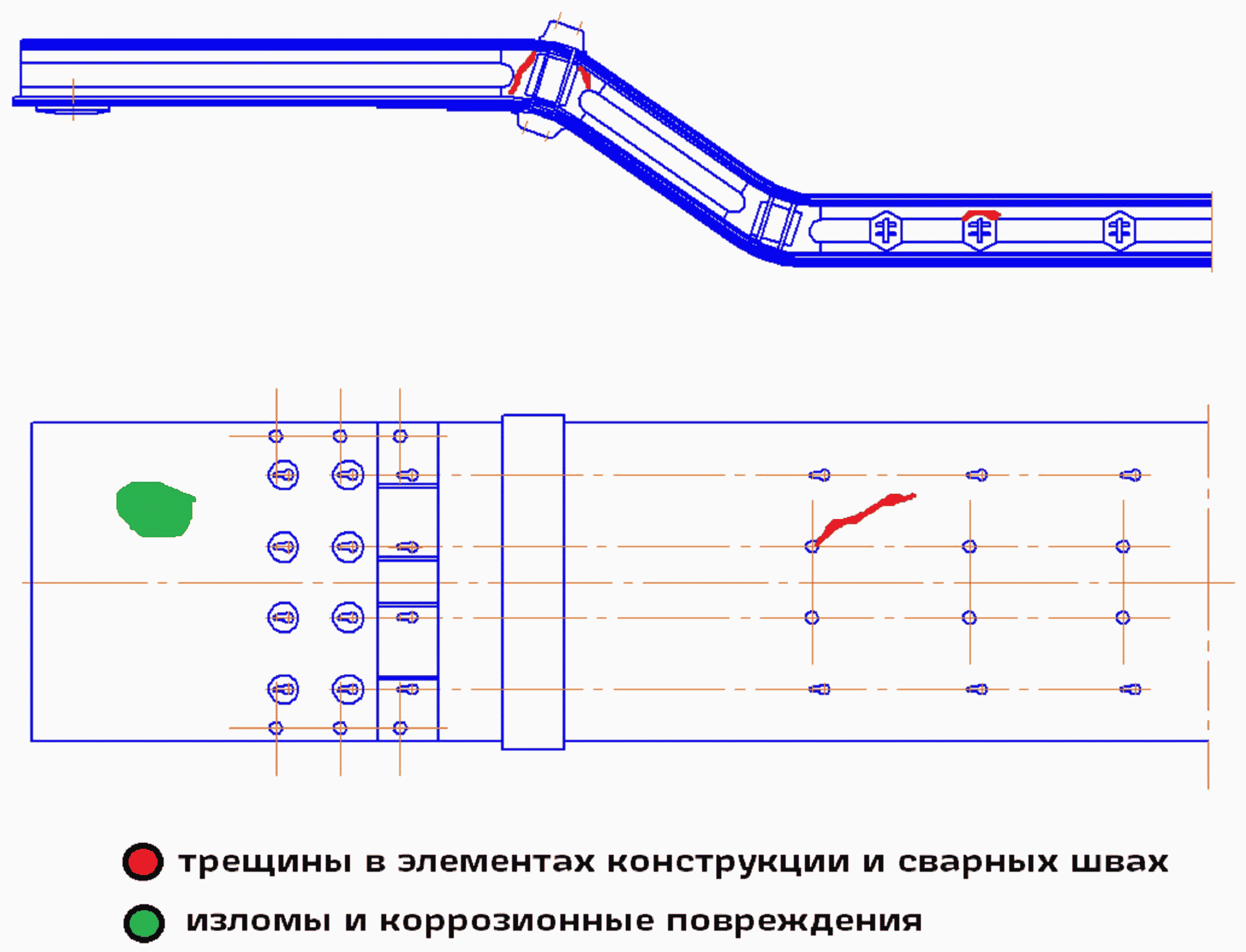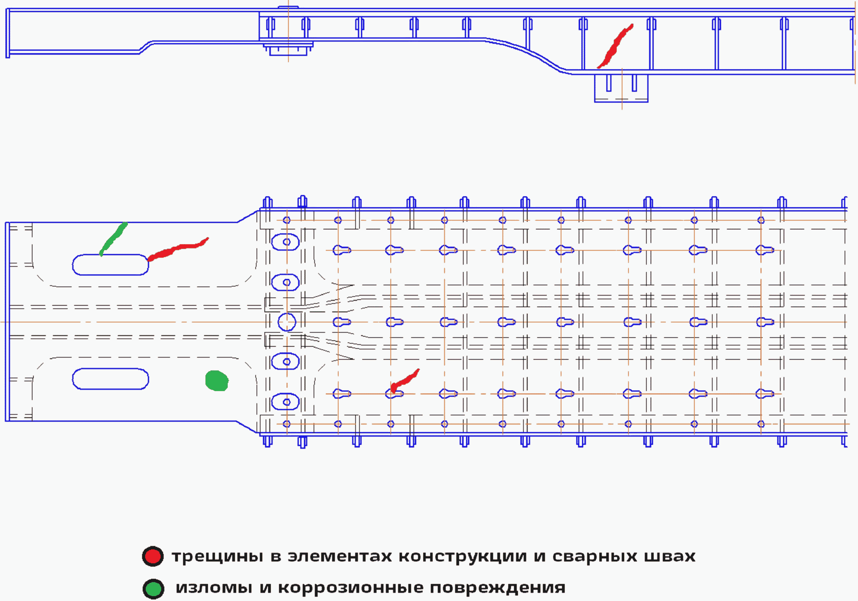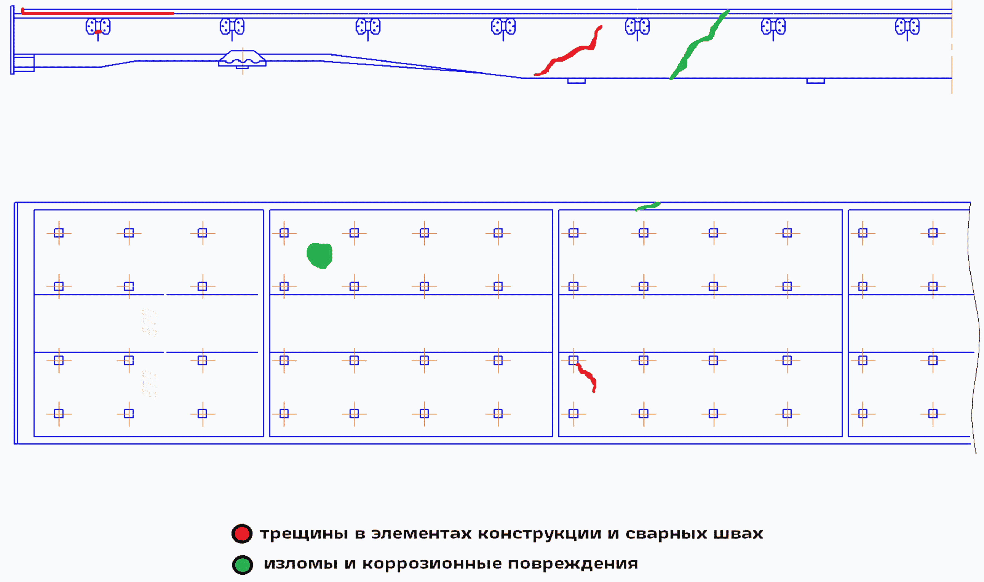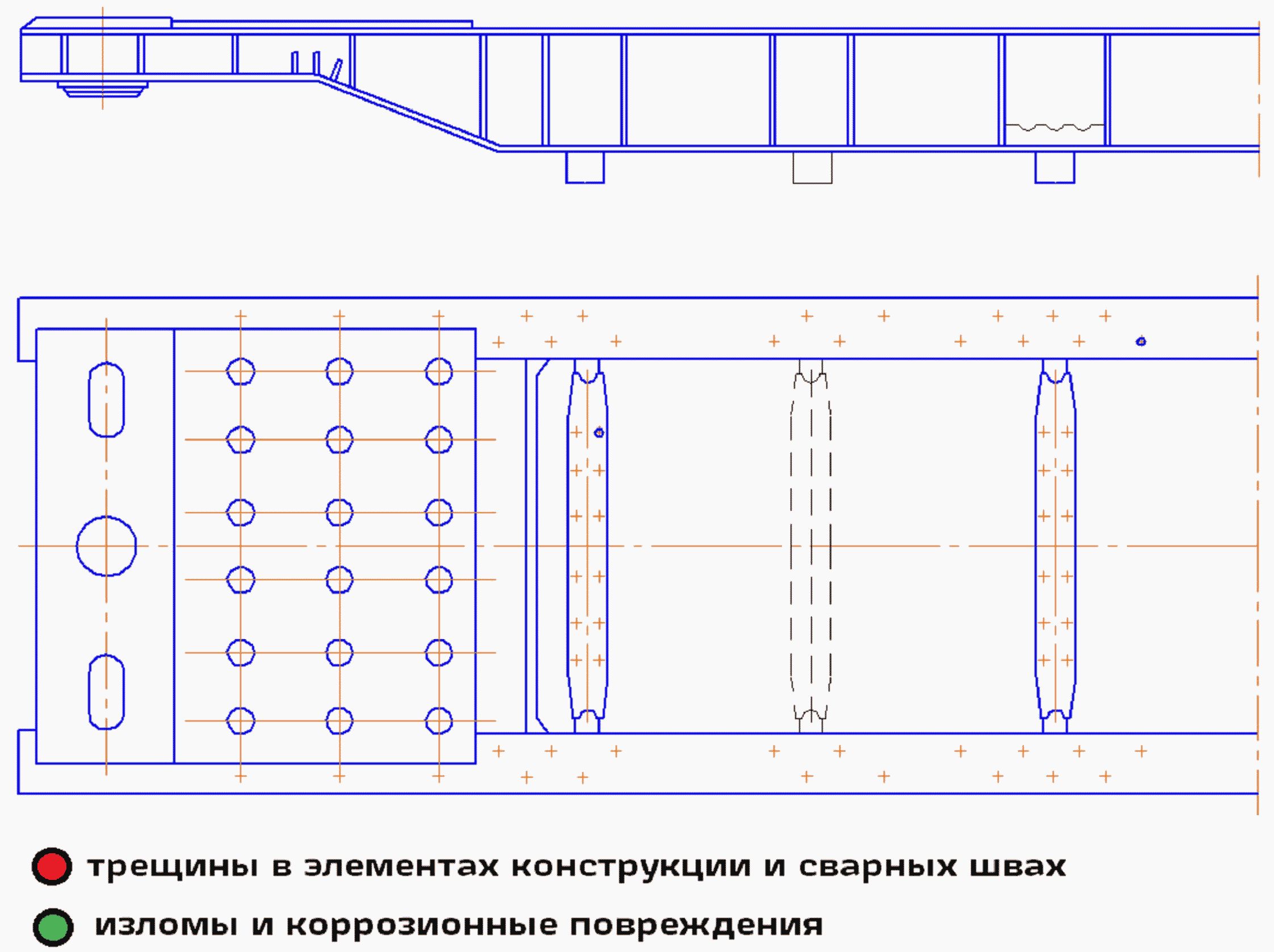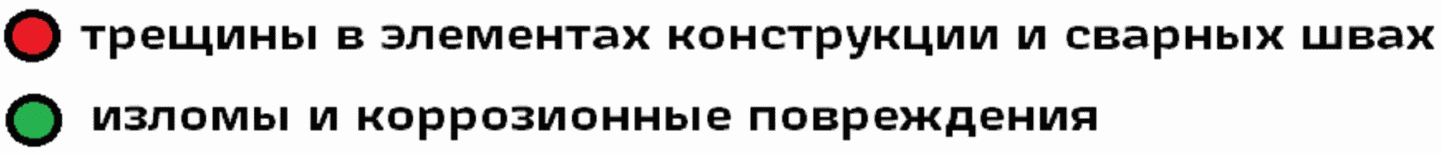 9.20 Ремонт трещин в любой части по сварным швам или основному металлу несущих конструкций | + | + | + | + | + |