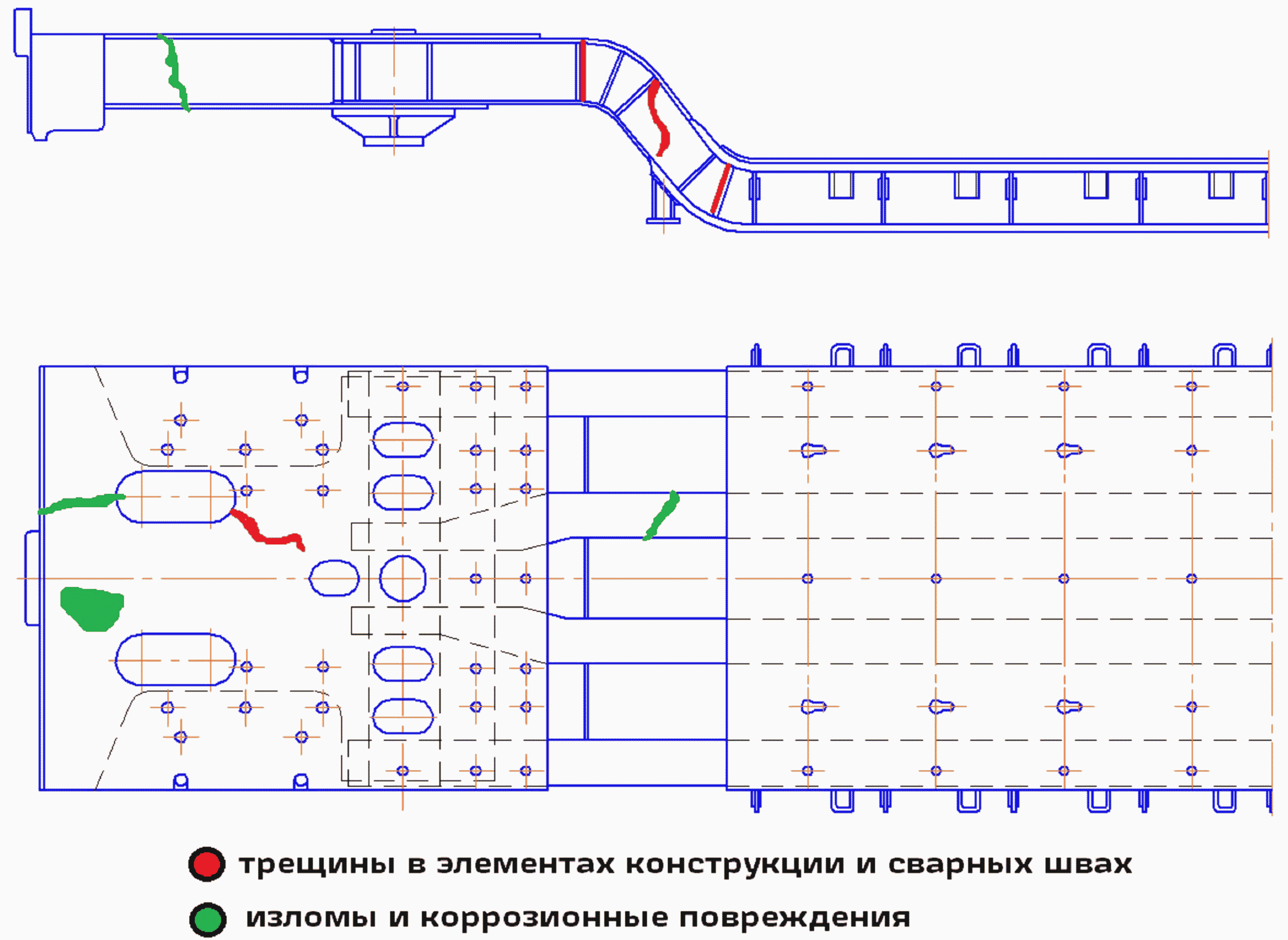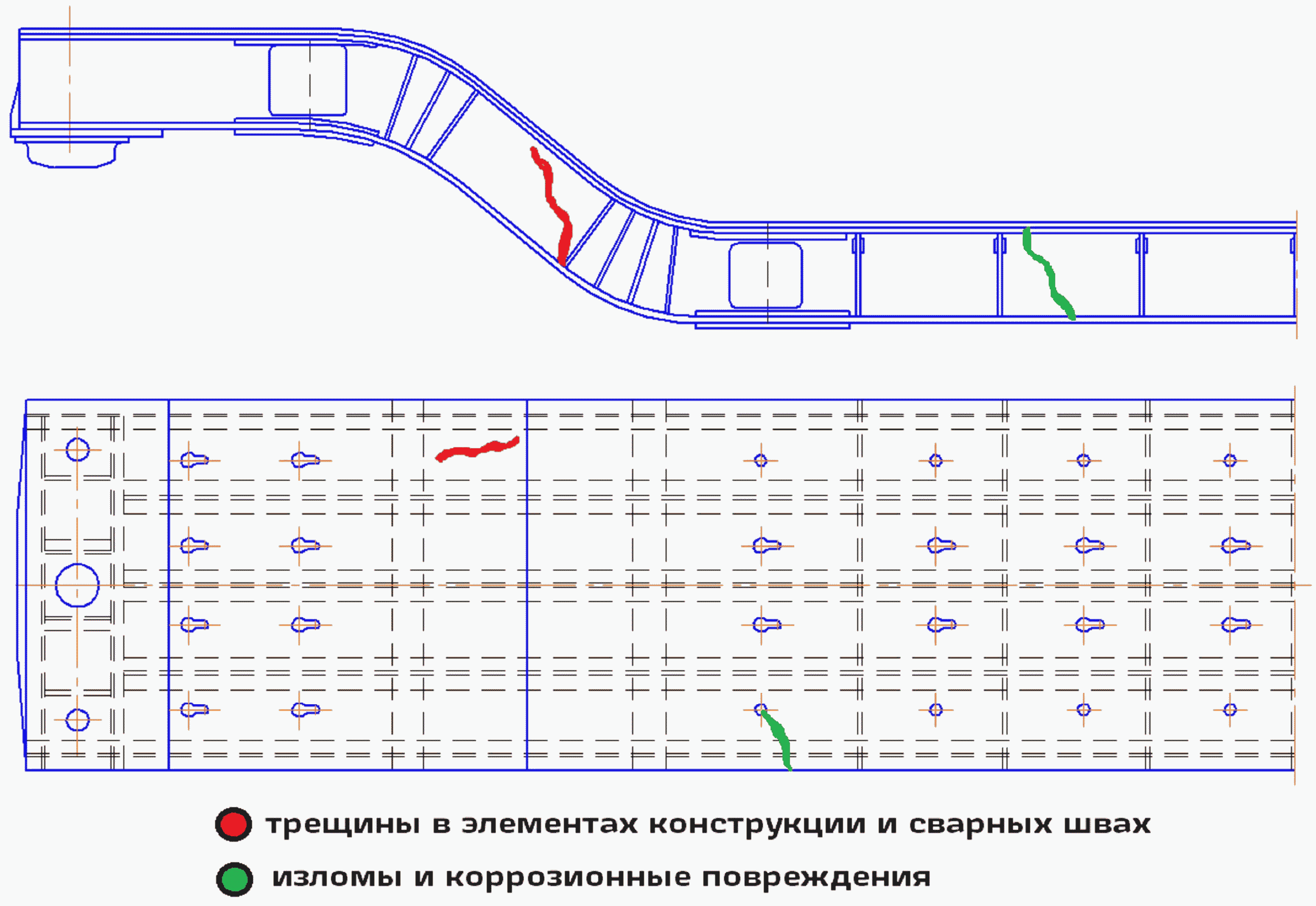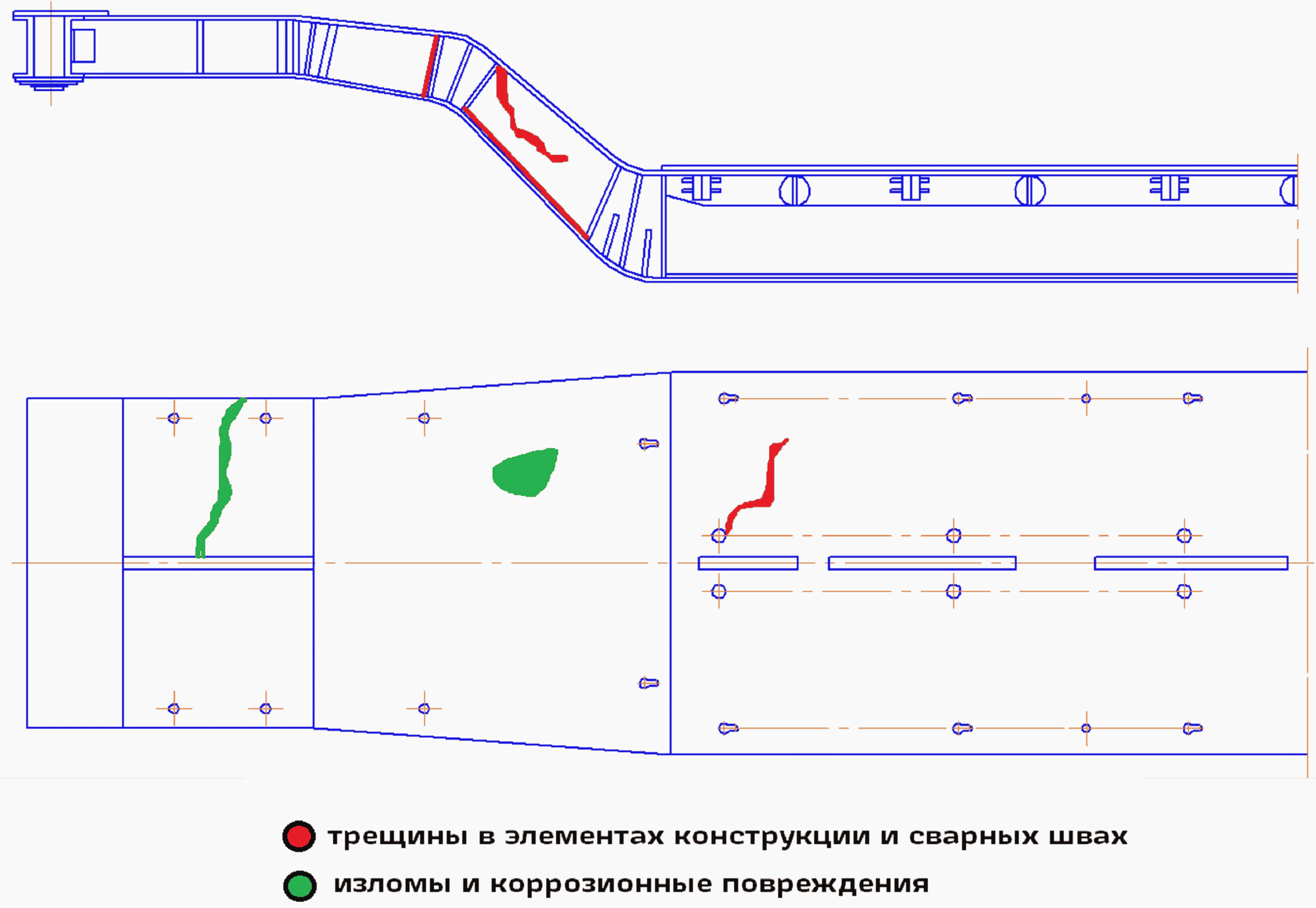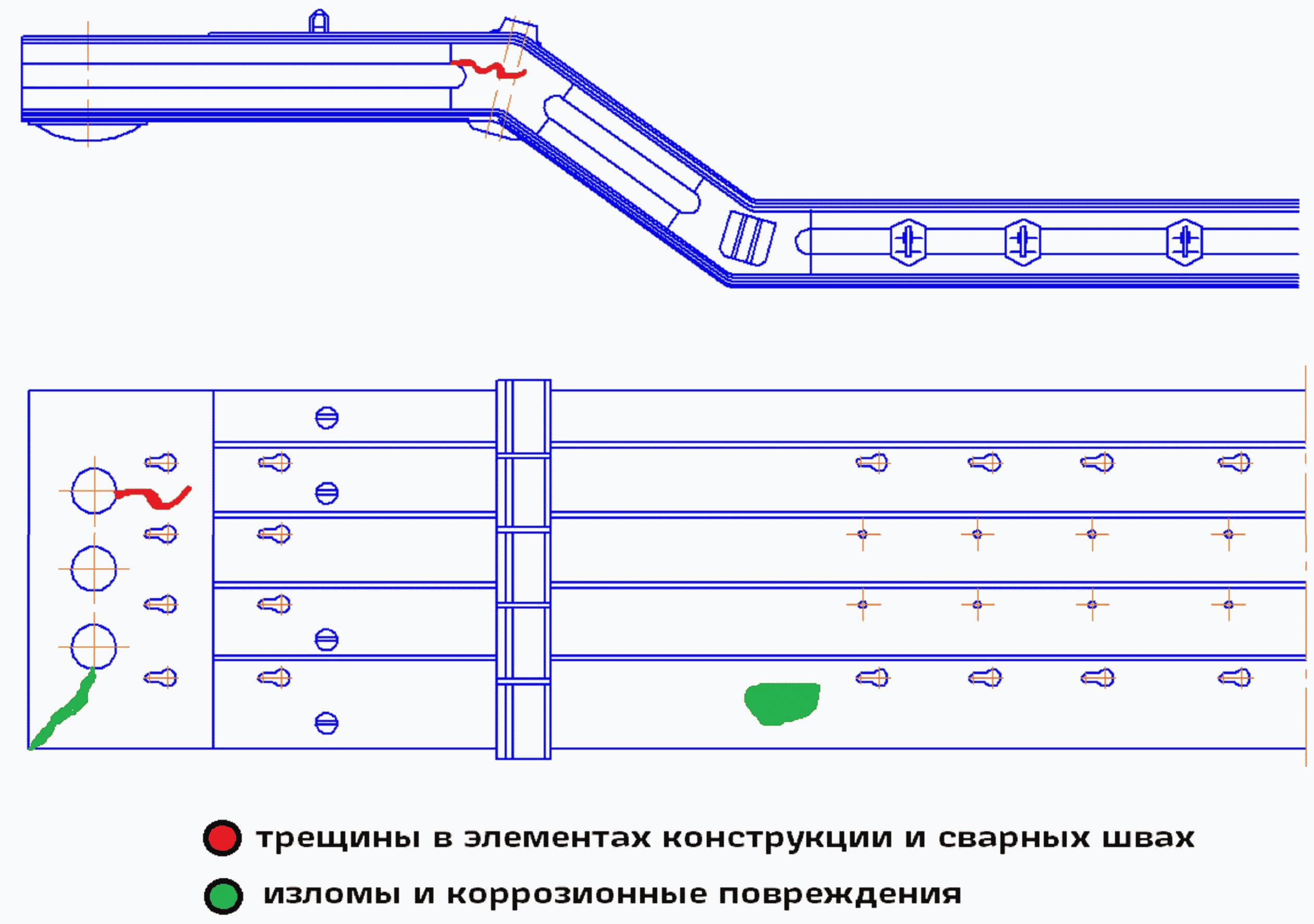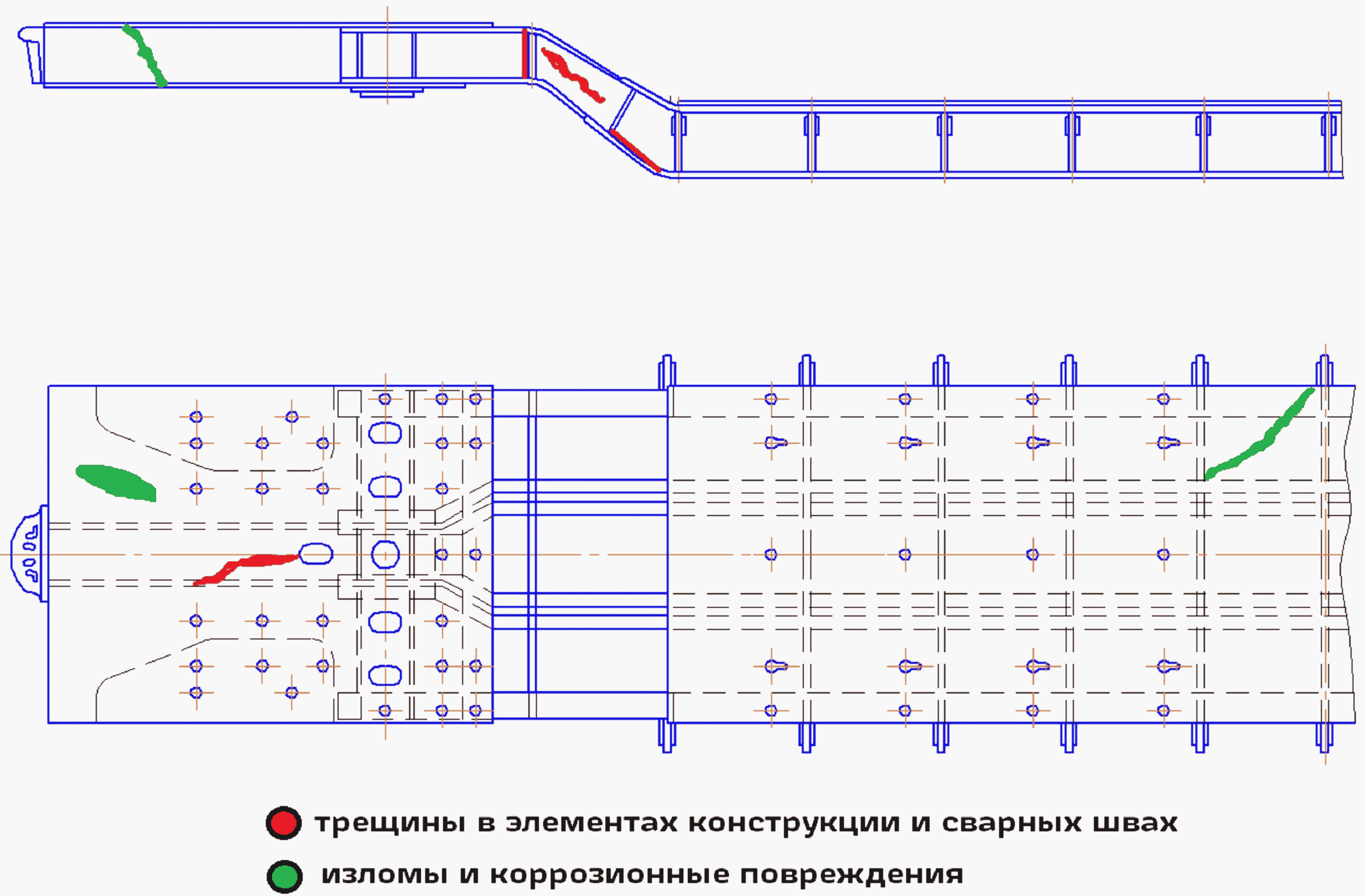 9.20 Ремонт трещин в любой части по сварным швам или основному металлу несущих конструкций | + | + | + | + | + |