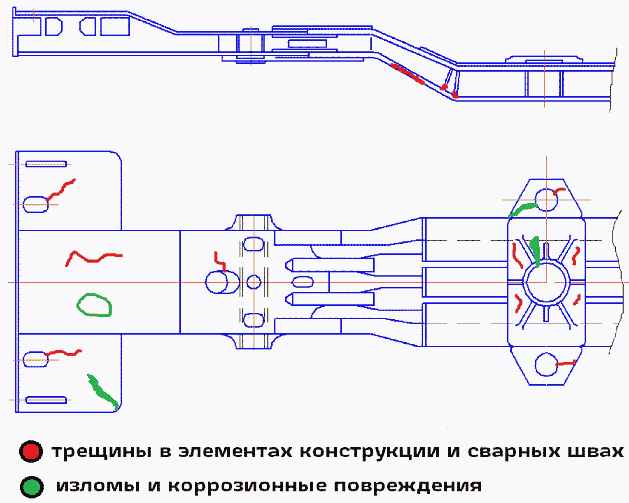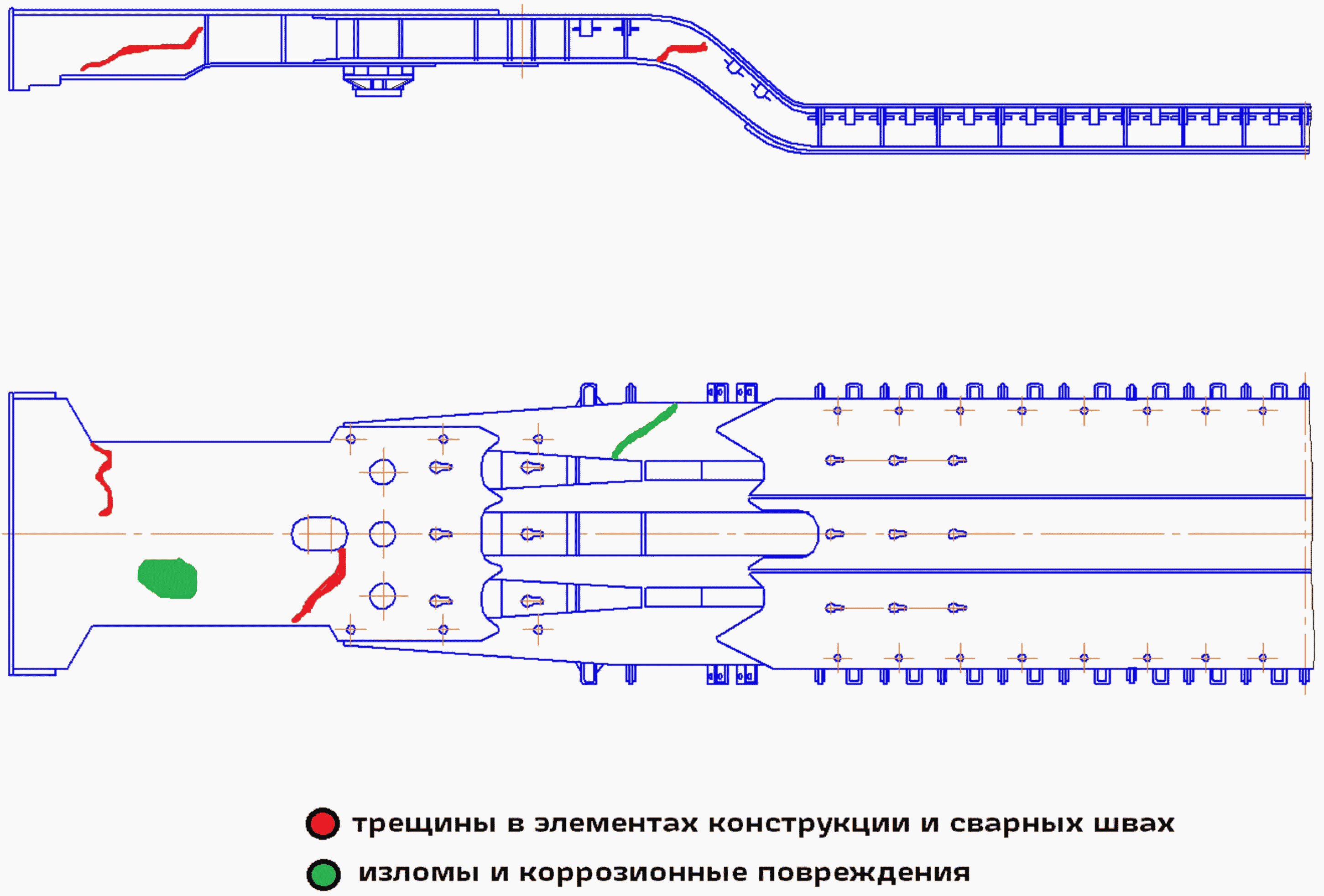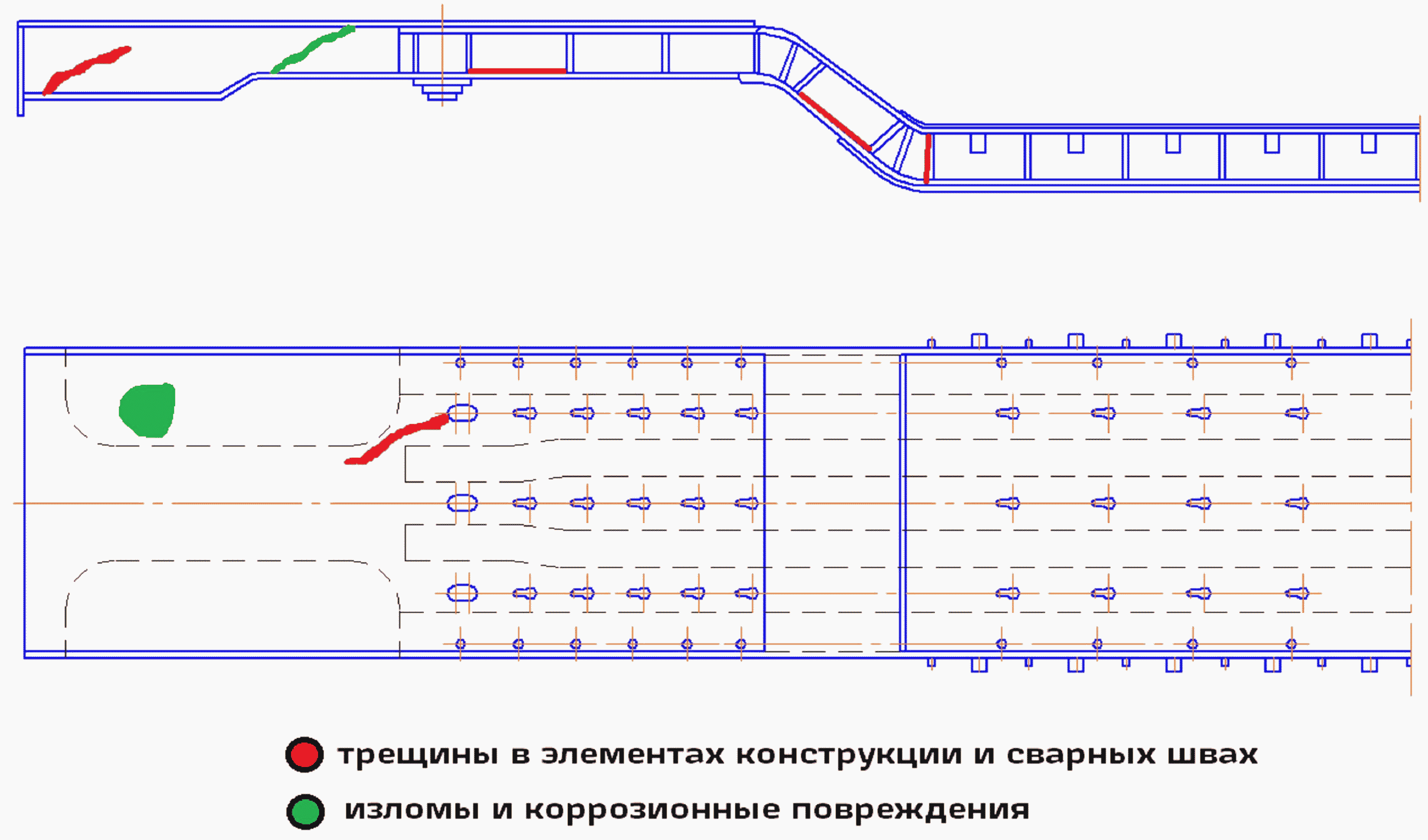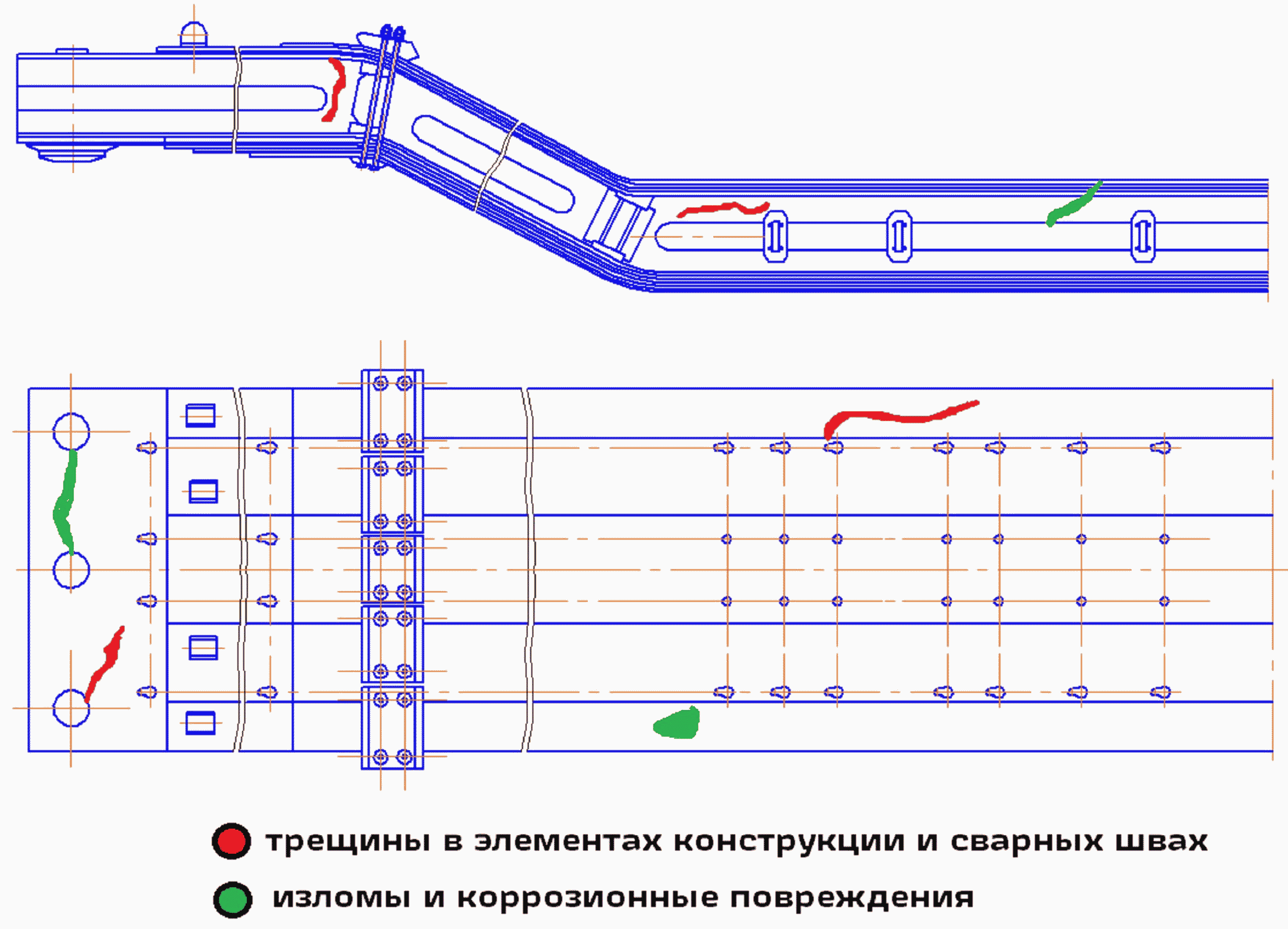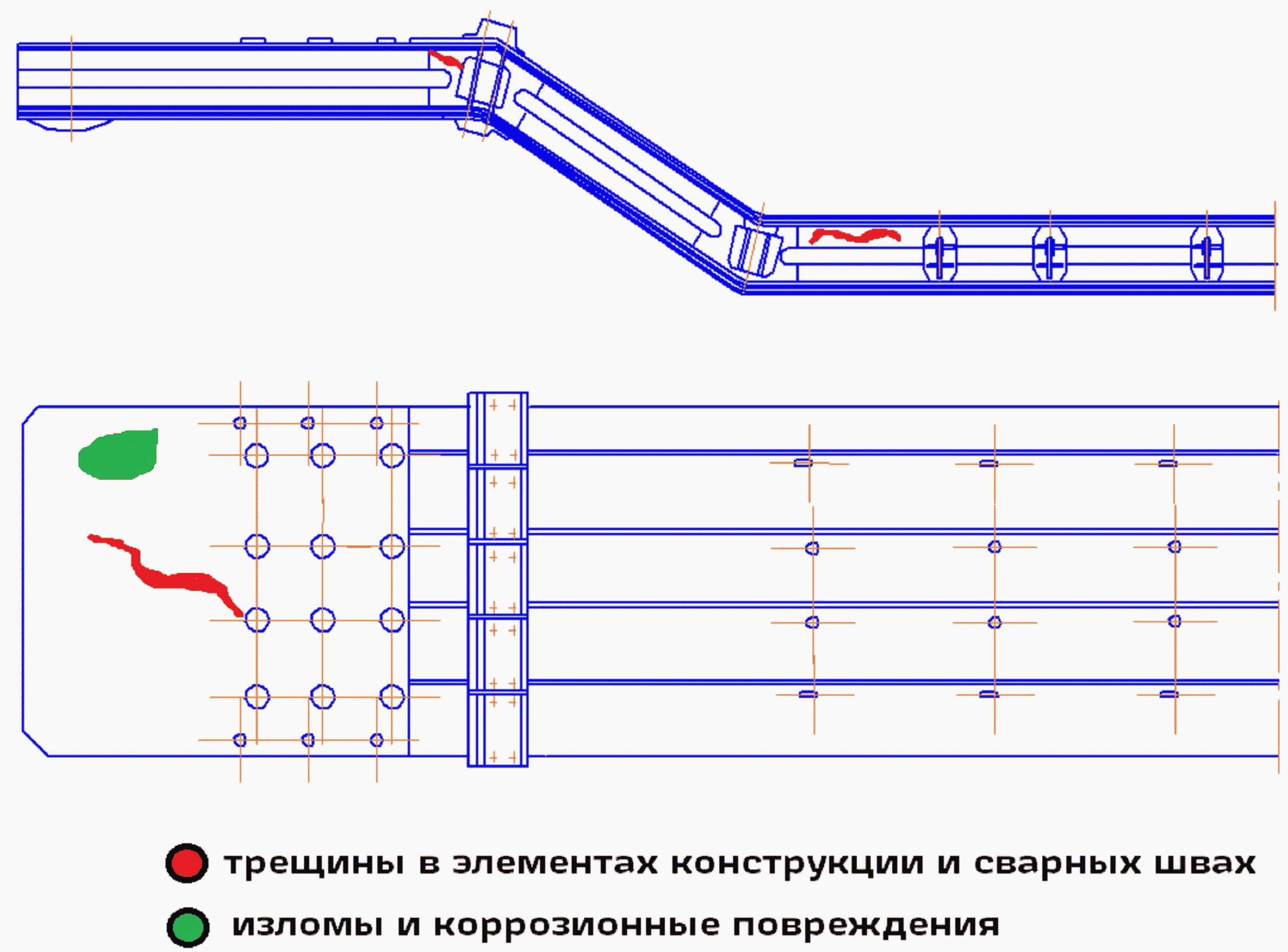 9.20 Ремонт трещин в любой части по сварным швам или основному металлу несущих конструкций | + | + | + | + | + |