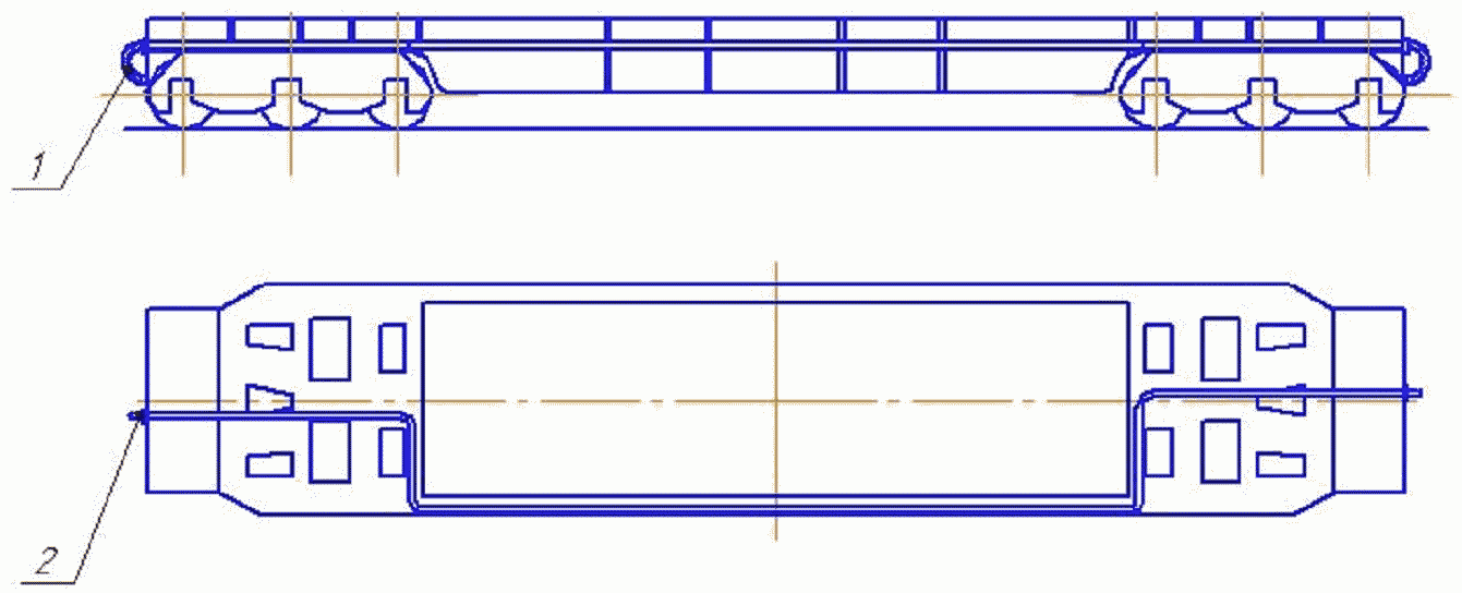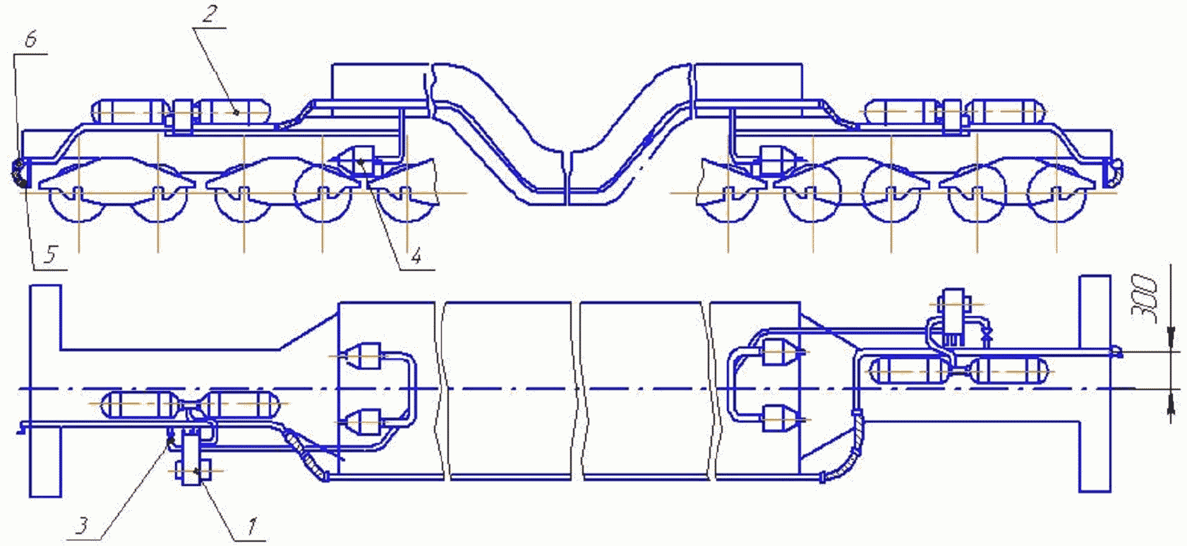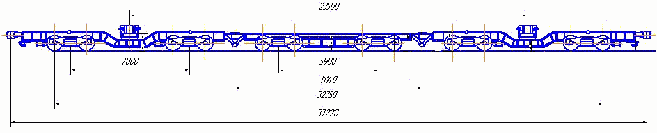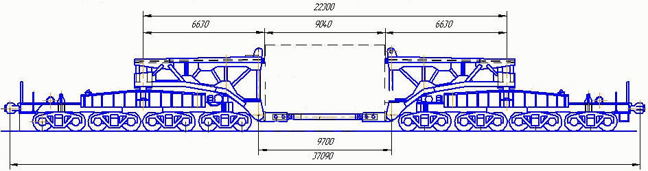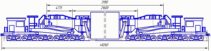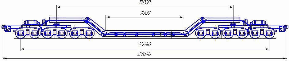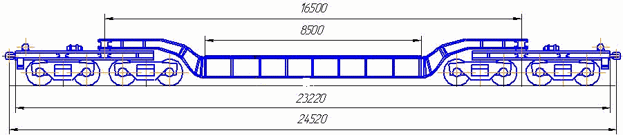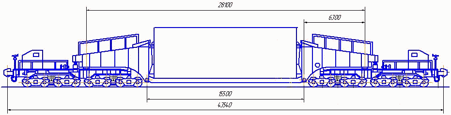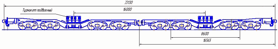 10 | Количество тележек 4-осн. | шт. | 2 | 28 | Минимальный радиус вписывания в кривую колеи 1520 мм | м | 100 | ||||