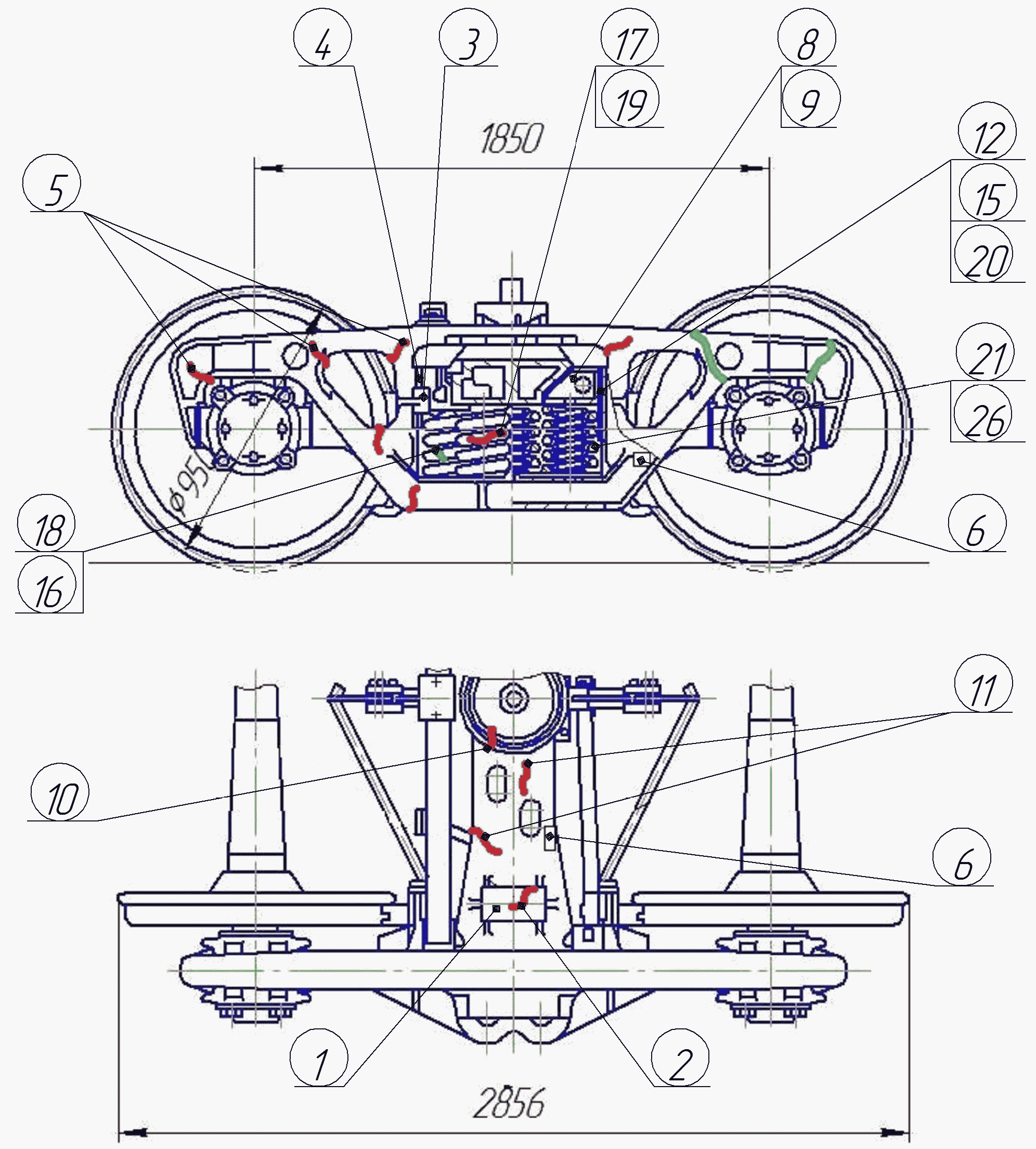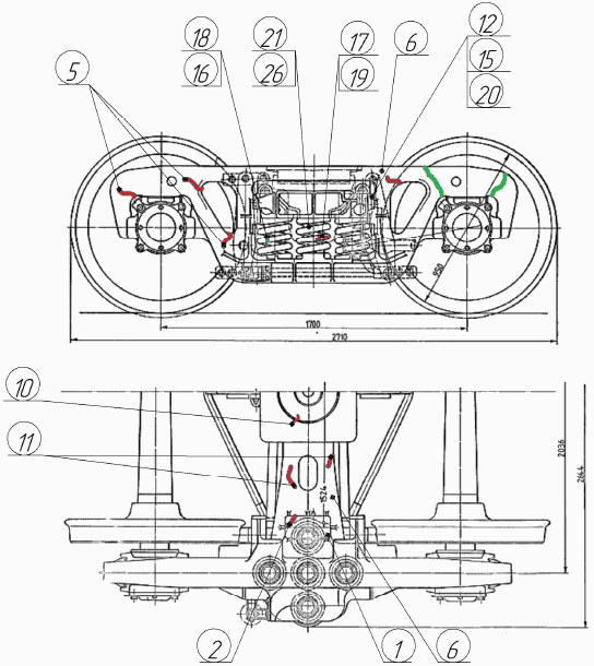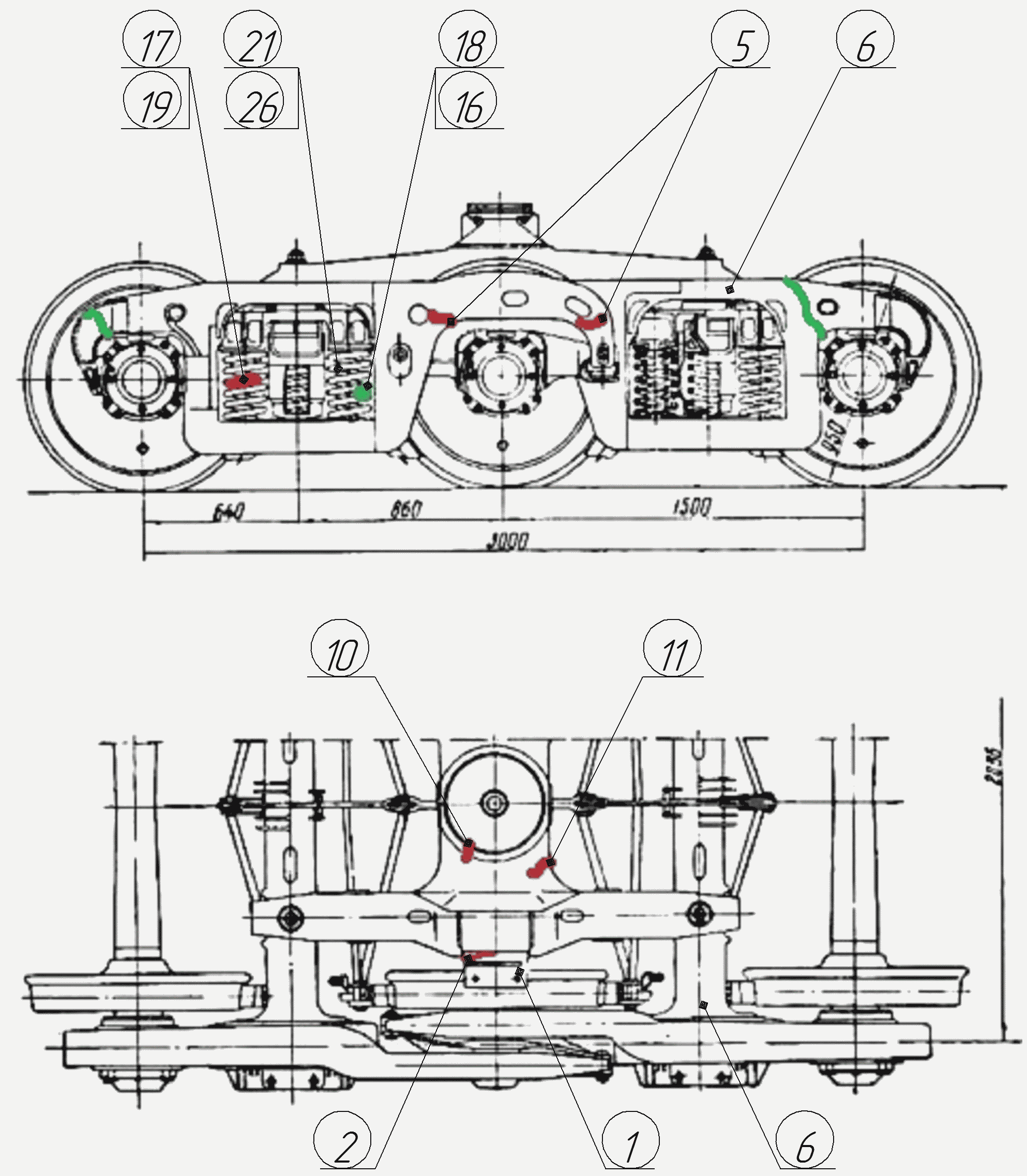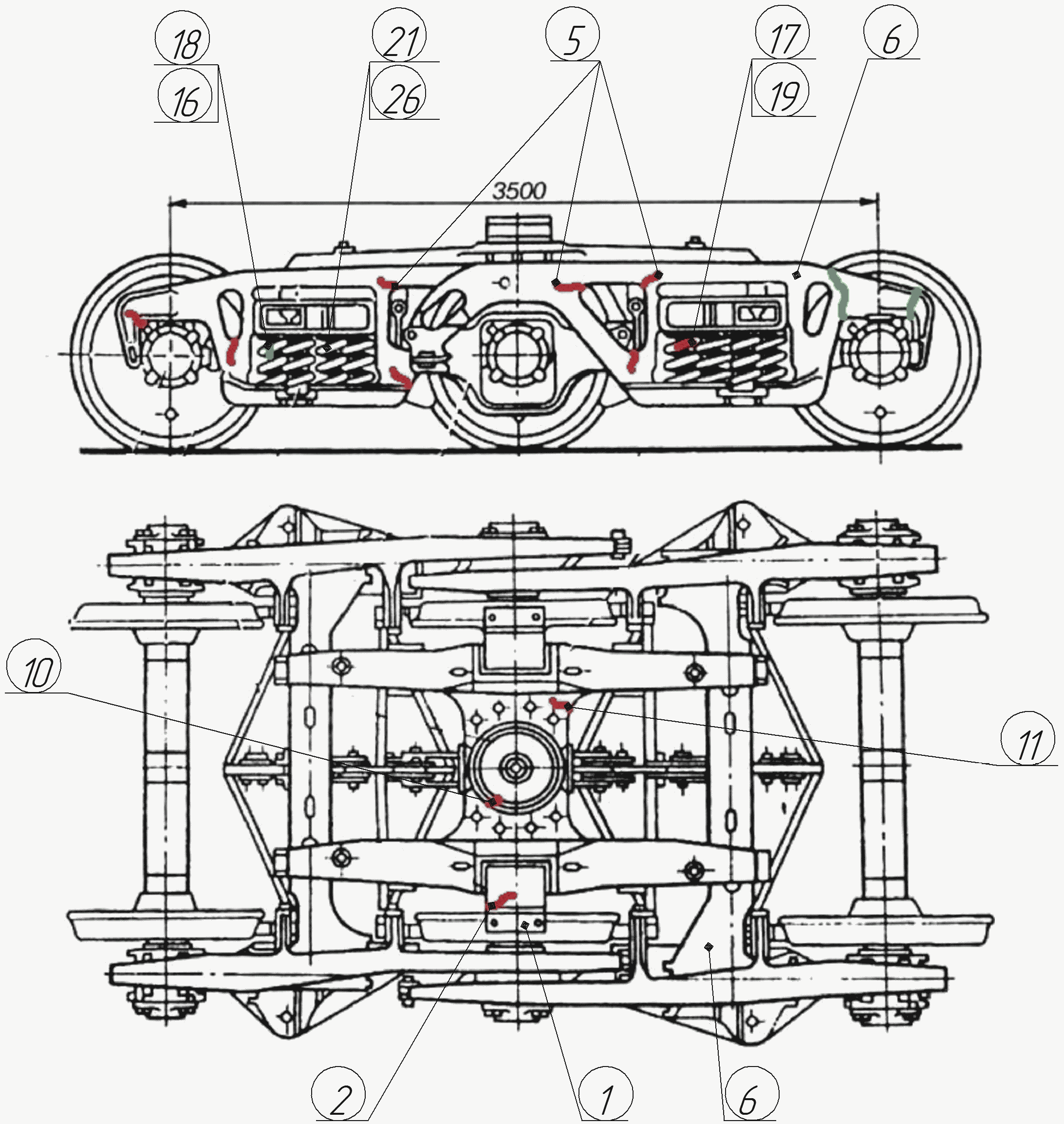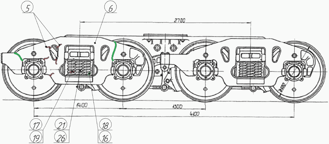 6 | Диаметр колеса по кругу катания | мм | 950 | 24 | Масса тележки | т | 11,95 | ||||