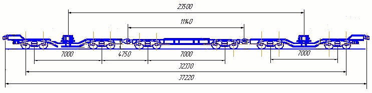 5 | Погонная нагрузка | т/м | 7,5 | 21 | Масса тележки | т | 11,95 |