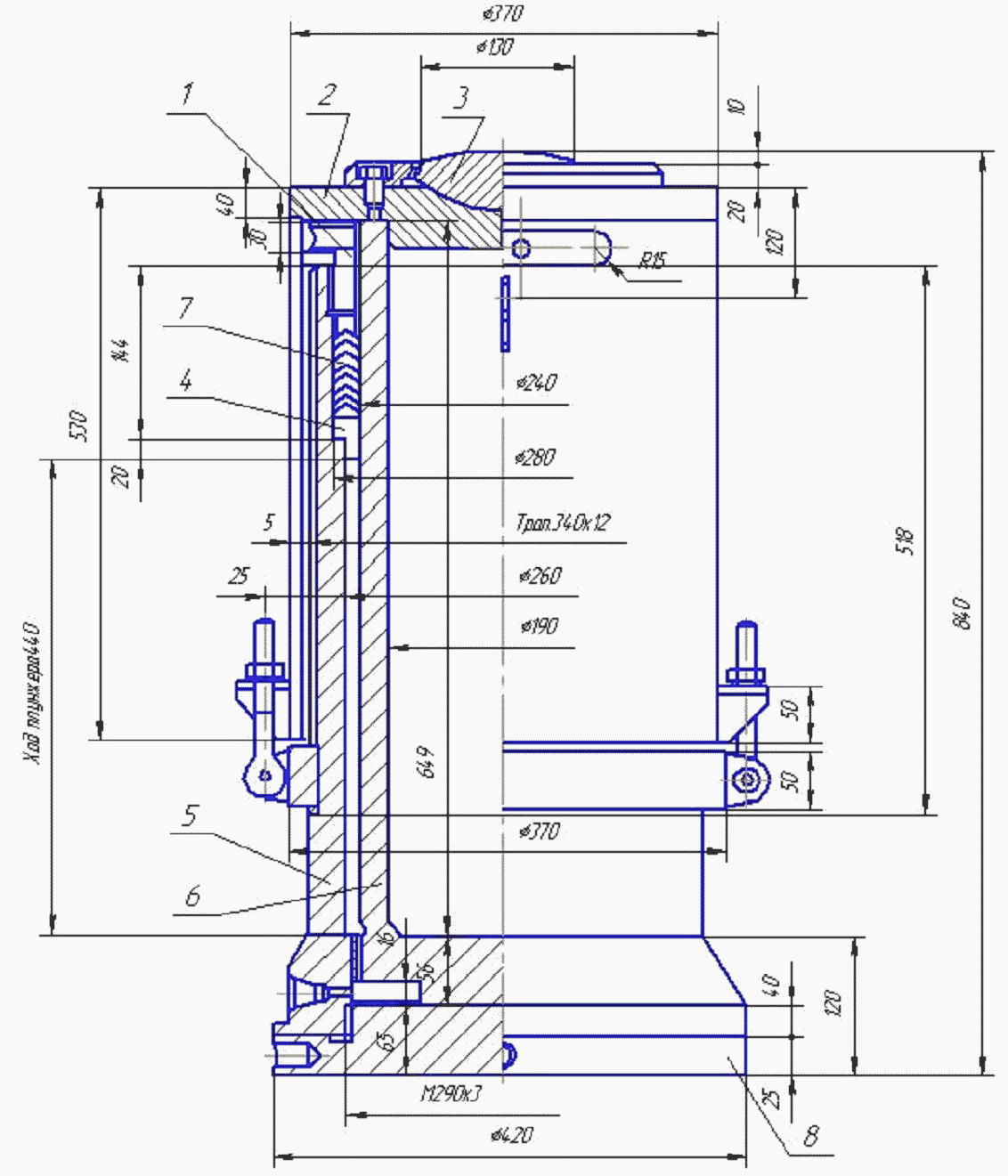 9.15 Опорного устройства несущих консолей (опорного штока, направляющей трубы, фиксатора удерживающего опорный шток в верхнем положении, опорных тележек, шпинделя, цилиндра опорного устройства) | + | + | + | + | + |
