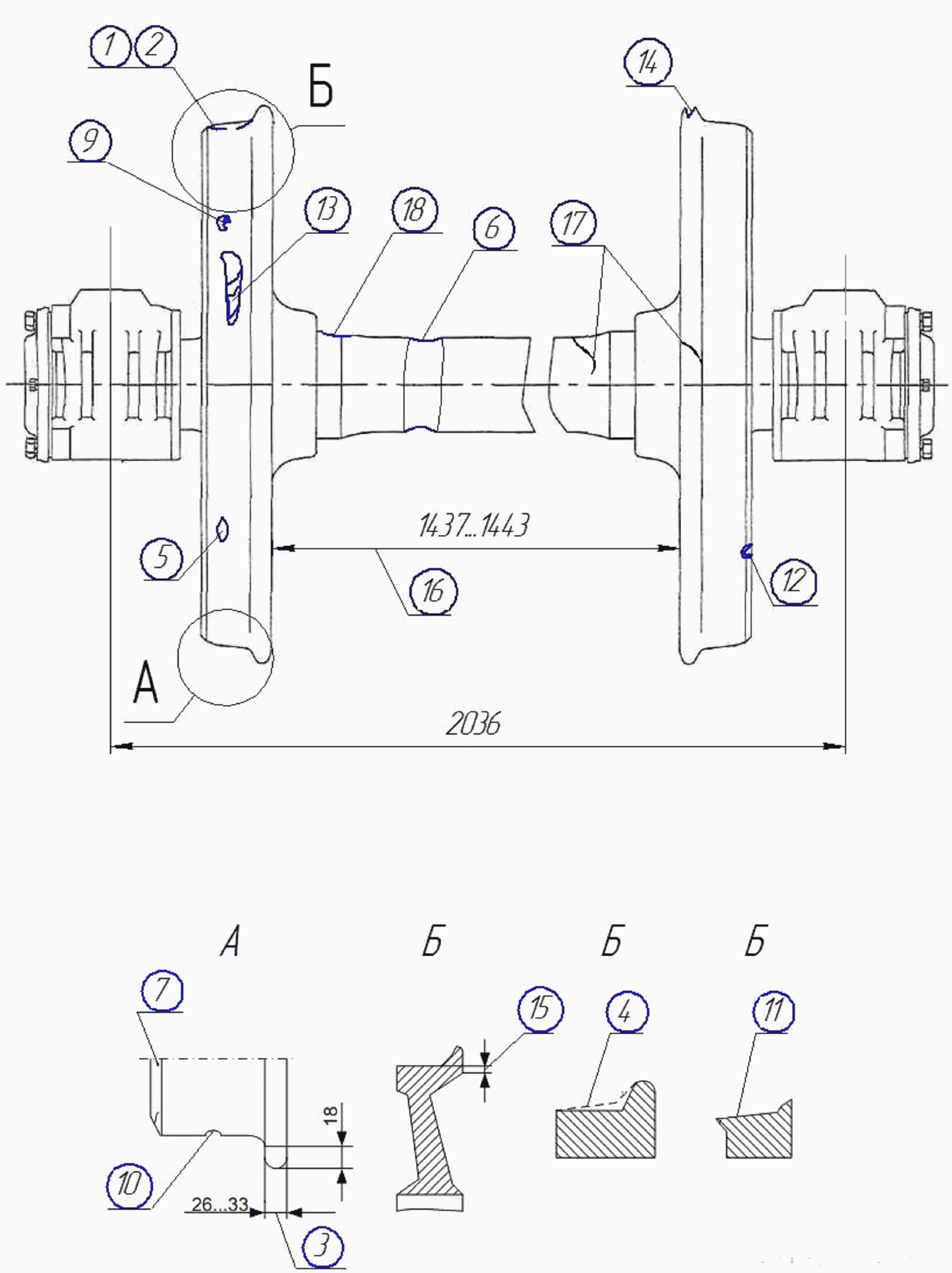 6 | Диаметр колеса по кругу катания | мм | 950 | 22 | Тип буфера | - | |