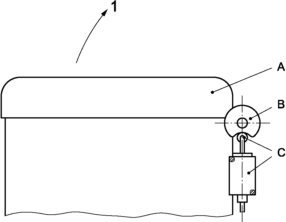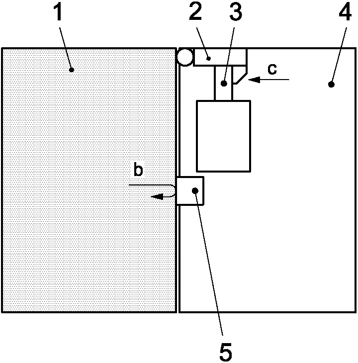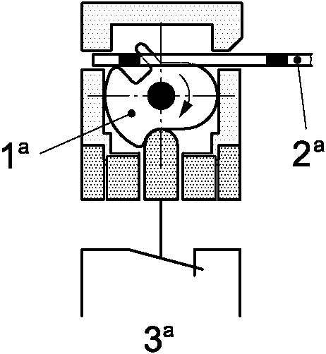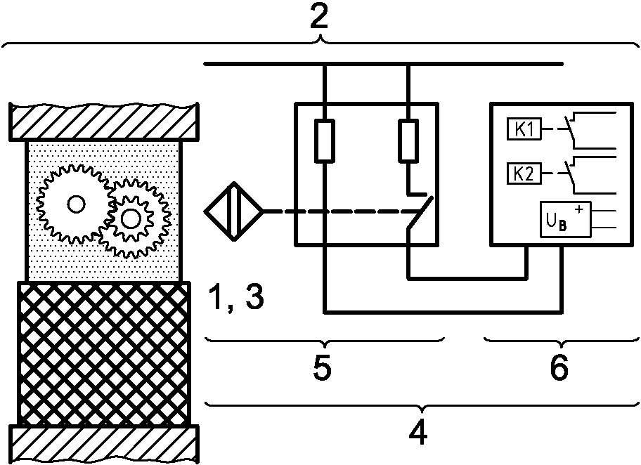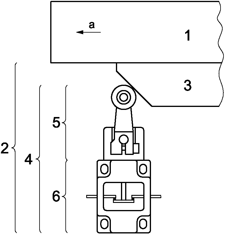 1 - ограждение 2 - блокировочное устройство 3 - привод a - направление открытия | 4 - переключатель положения 5 - система вывода 6 - приводная система |