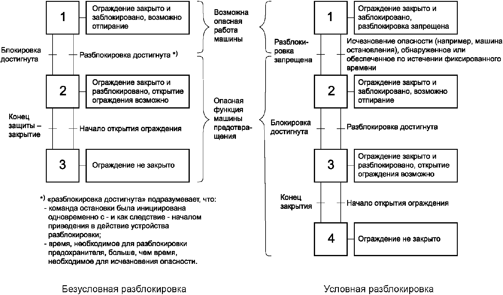 Примечание - ISO 14120 устанавливает общие требования к конструированию и конструкции ограждений, предназначенных в первую очередь для защиты людей от механических воздействий. Обработка сигнала от блокировочного устройства для остановки и обездвиживания машины рассматривается в ISO 13849-1 или IEC 62061.