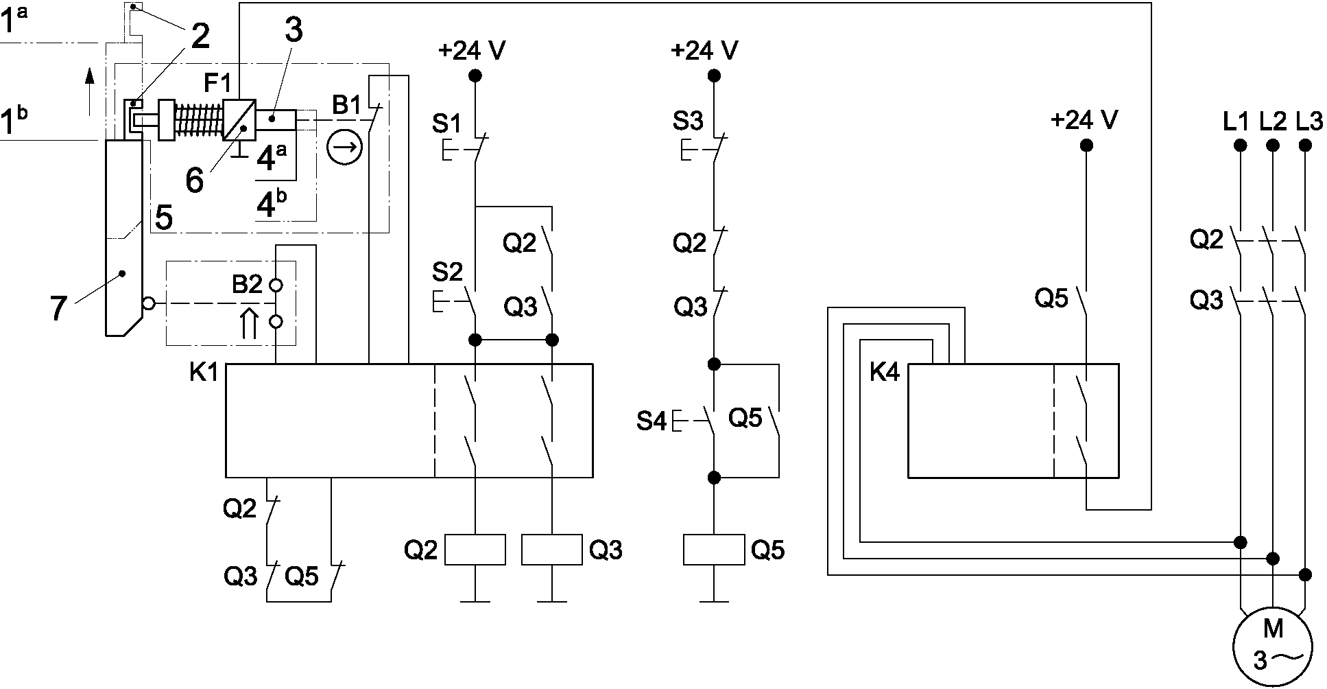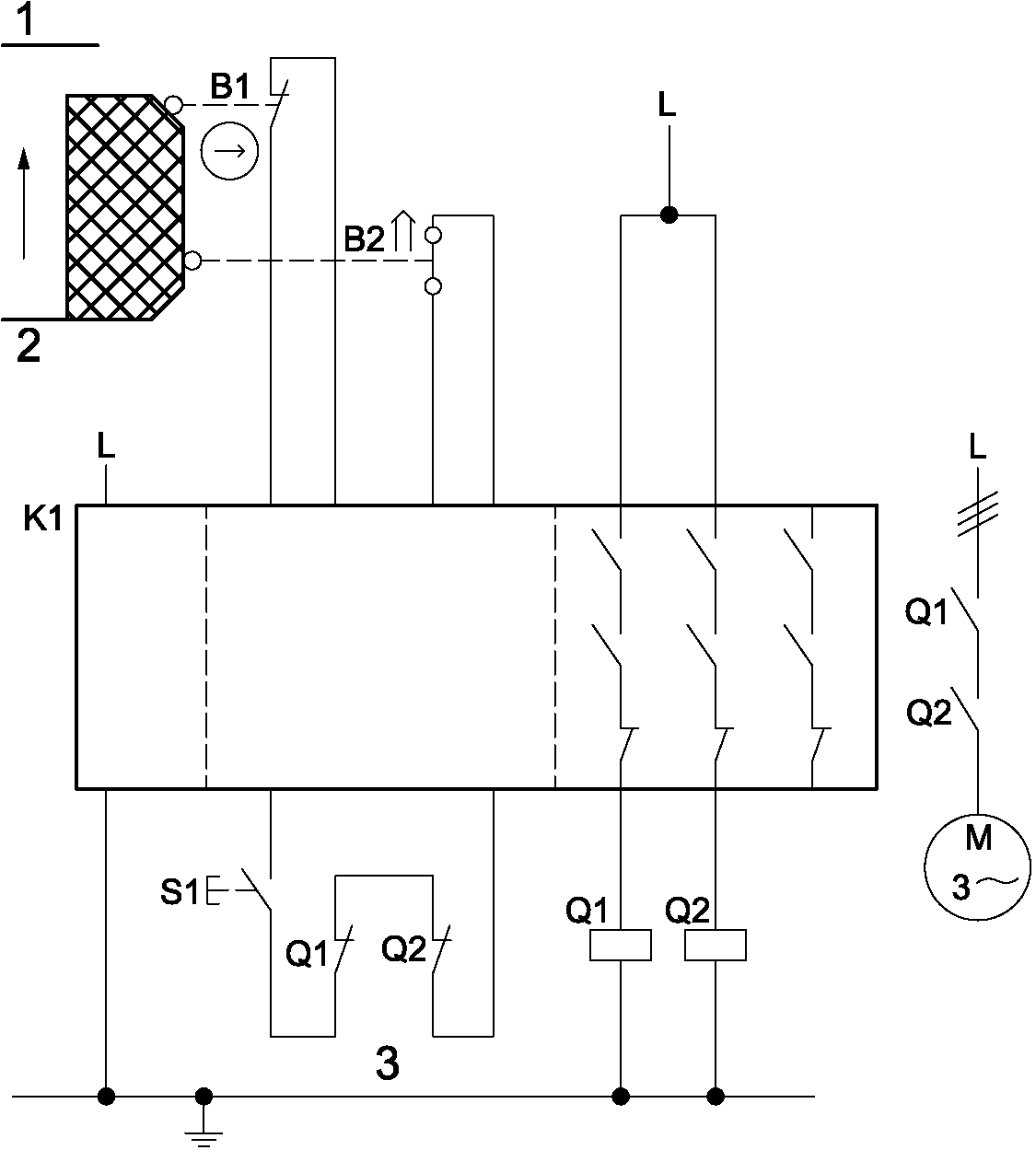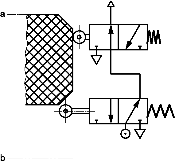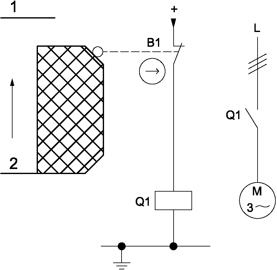 1 Комбинированные связанные с безопасностью части системы управления начинаются в точке, где инициируются входные сигналы, связанные с безопасностью (включая, например, приводной кулачок и ролик позиционного выключателя), и заканчиваются на выходе силового элемента управления (включая, например, главные контакты контактора).