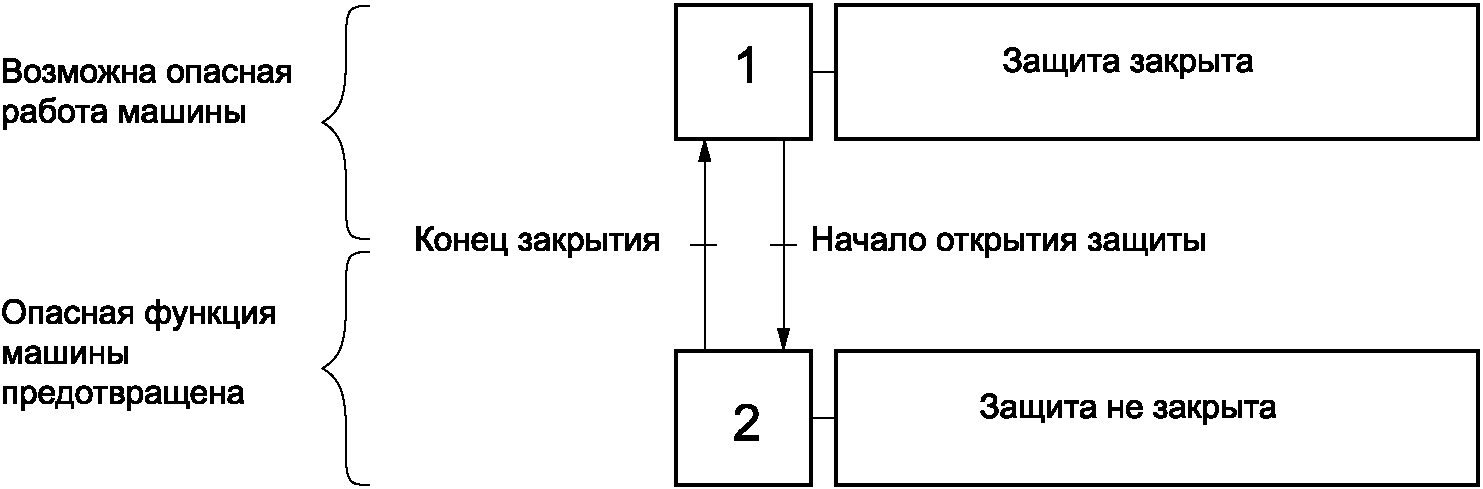 - исключения возможности выполнения защищенных им опасных функций машины при открытом ограждении;