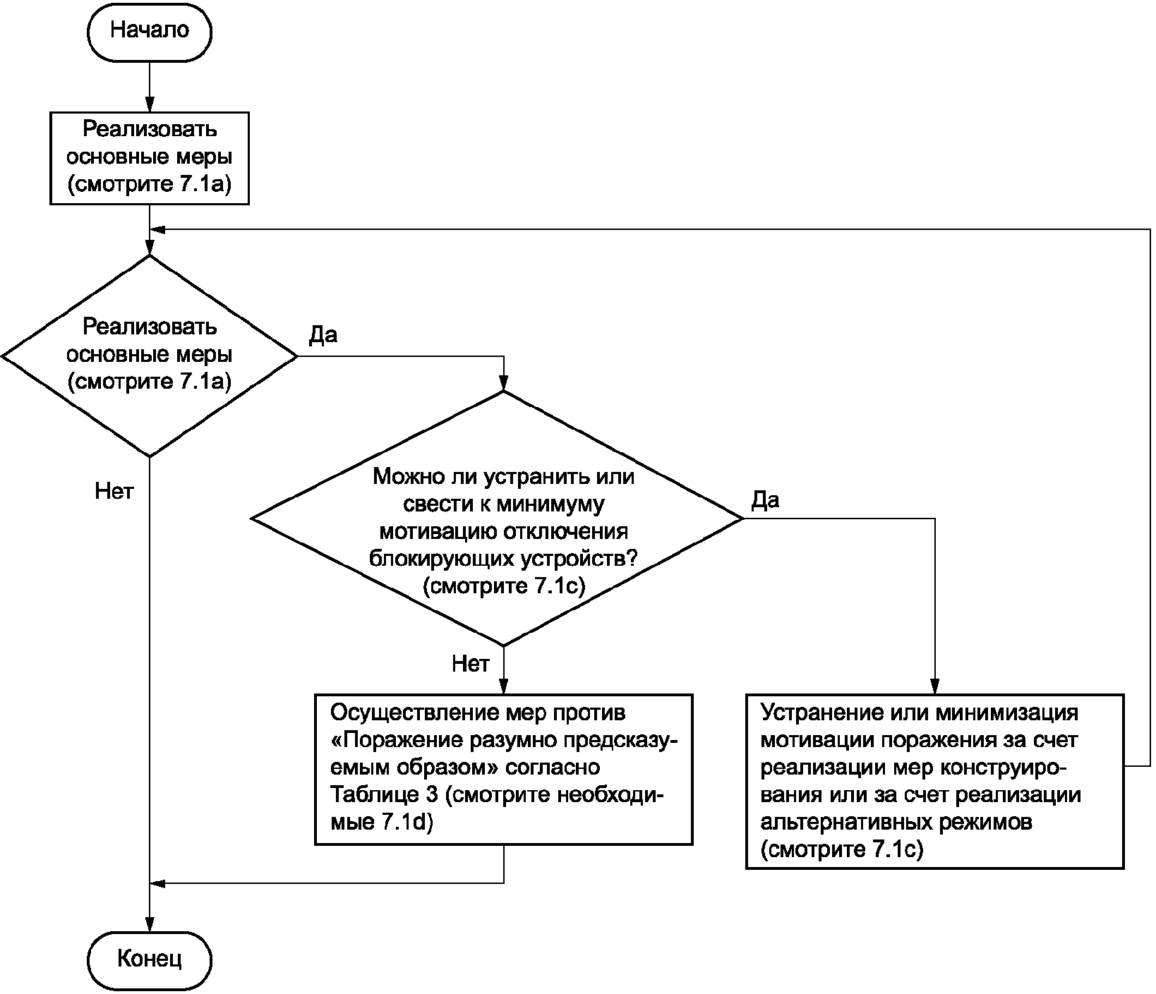Следующий метод помогает разработчику машины определить возможные стимулы для устранения блокировочных устройств. Использование этого метода требует, чтобы были учтены все предполагаемые режимы работы и защитные устройства. Каждое индивидуальное защитное устройство рассматривается отдельно, и для каждой соответствующей задачи человеку, знакомому с управлением машиной, задается следующий вопрос: