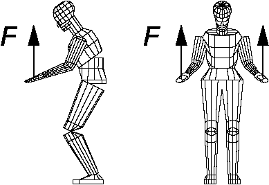 | Вертикально вверх | Стоя, туловище и ноги согнуты, стопы параллельны | Бимануальные горизонтальные захваты | 1 400 |