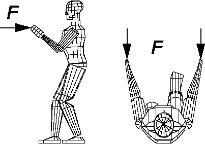| Горизонтальный, перпендикулярный плоскости симметрии тела корпус выключен | Стоя, туловище согнуто в сторону | Надавливание плечом на металлическую пластину сбоку | 1 300 |