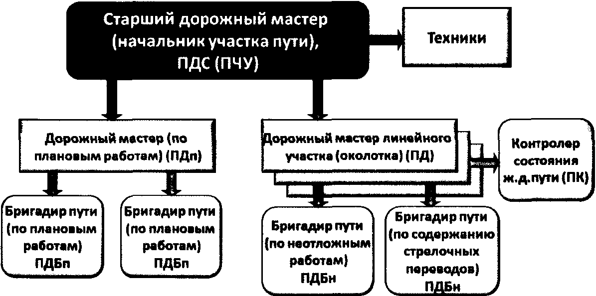 2.7. ПК находятся в подчинении ПДС (ПЧУ) или дорожного мастера (далее - ПД) по согласованию с начальником дирекции инфраструктуры.