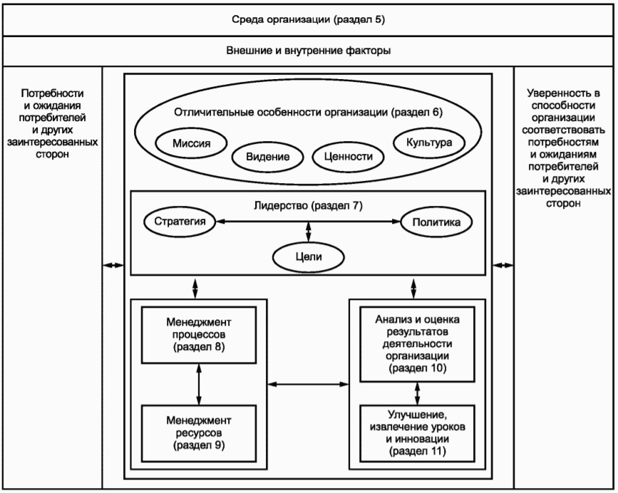 приложение A). Структура настоящего стандарта, включающая элементы, способствующие достижению организацией устойчивого успеха, как указано в настоящем стандарте, представлена на рисунке 1.
