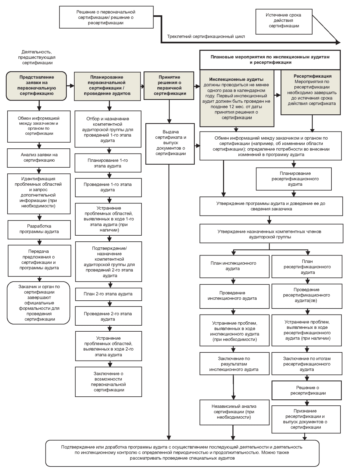 2 Сертификационные аудиты включают в себя первоначальный, инспекционные, ресертификационный (повторный) аудиты, а также могут включать специальные аудиты.