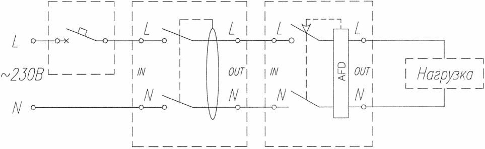 устройствами защиты электрических сетей (АВ, УДТ, АВДТ)
