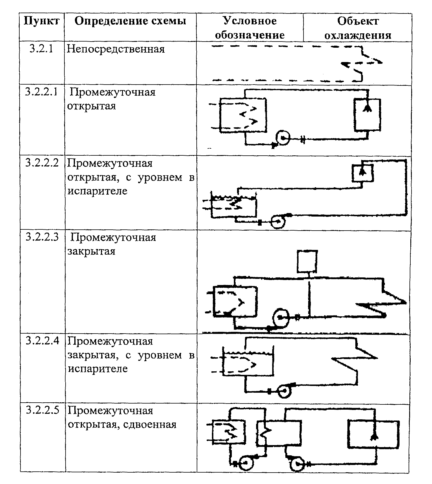 3.2. Различают шесть принципиальных схем холодоснабжения, условные графические изображения которых приведены в