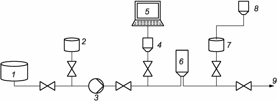 3 - насос; 4 - фильтр для газов с размером пор 0,2 мкм;