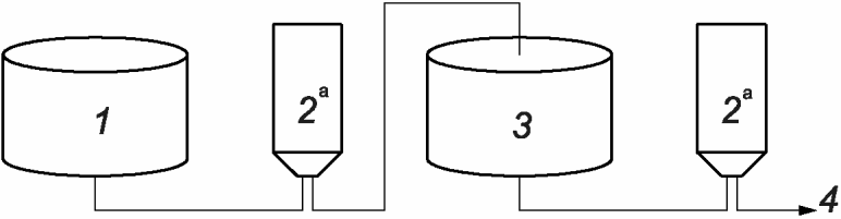 1 - продукт; 2 - смачивающая/промывающая жидкость;