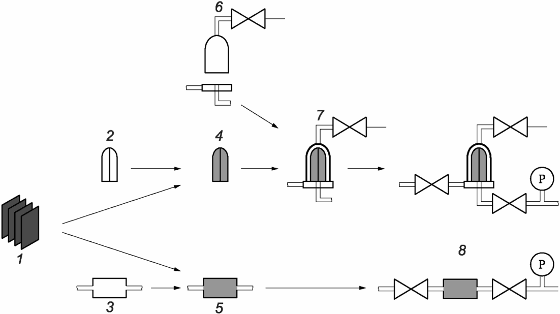 5 - прибор для испытания на целостность фильтра; 6 - фильтр