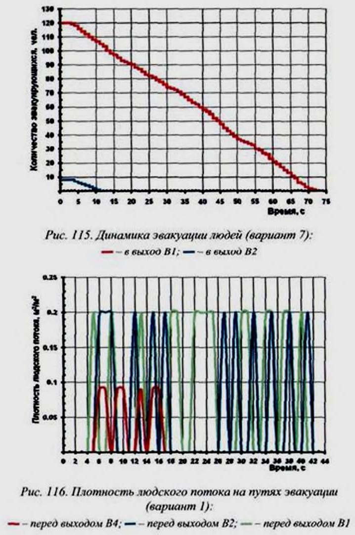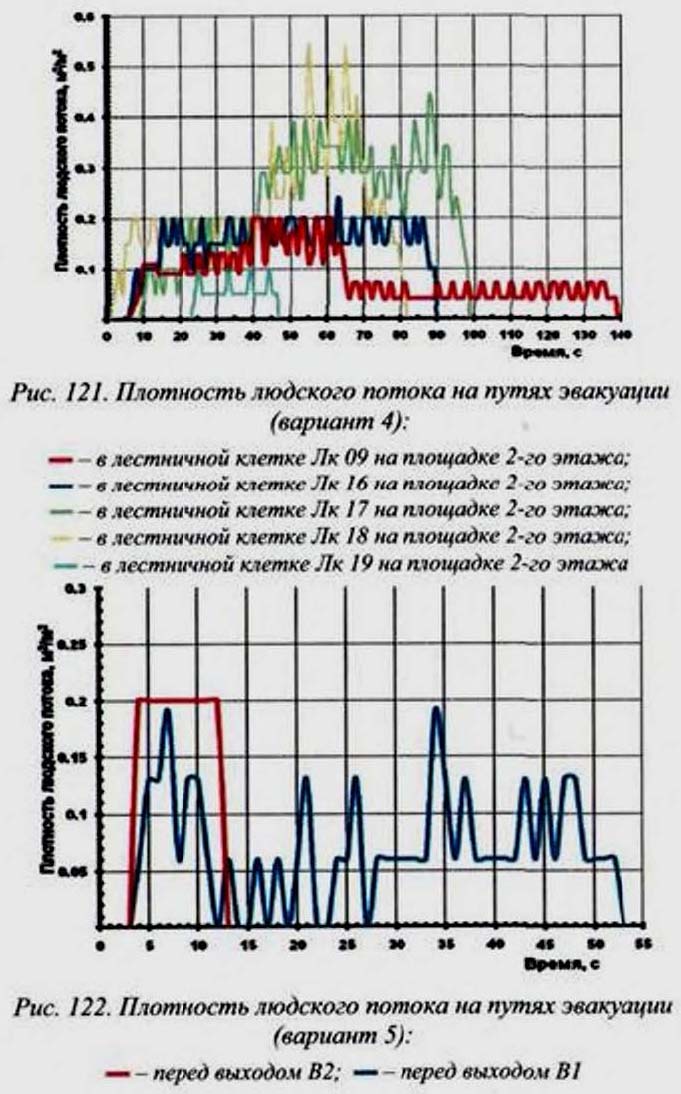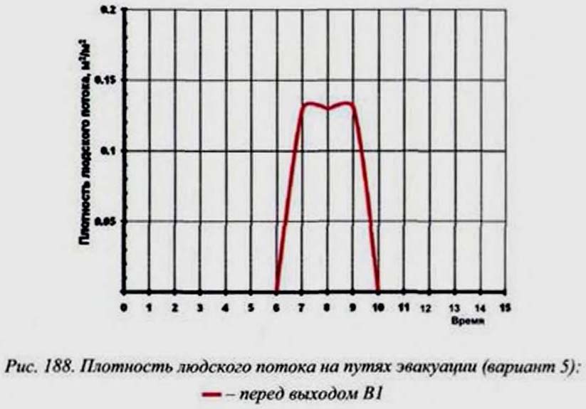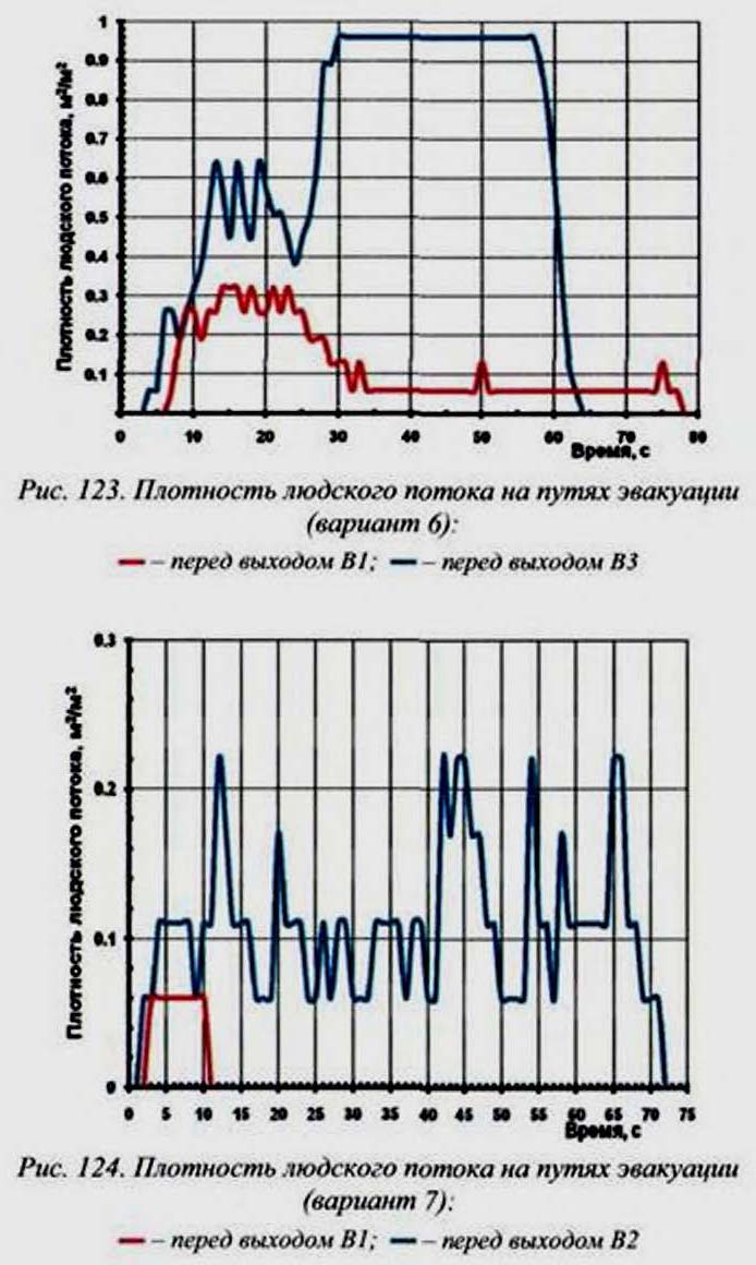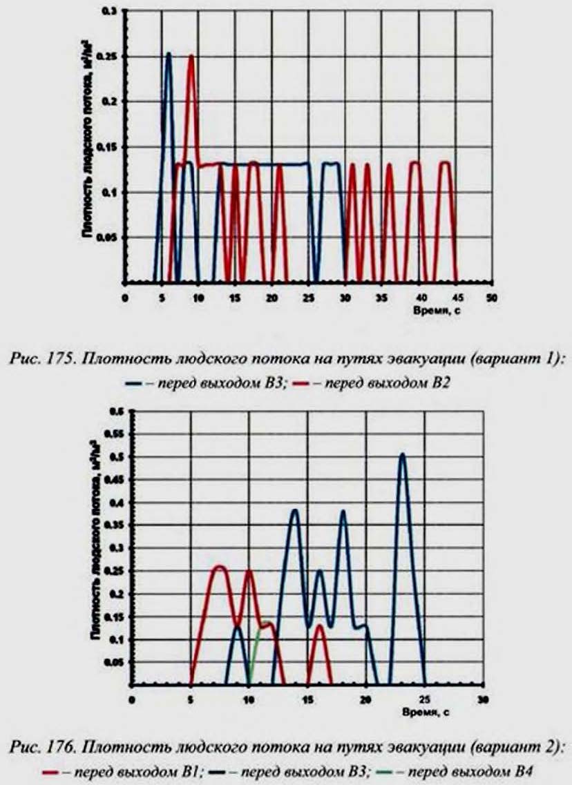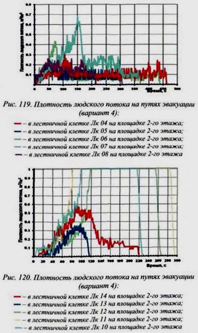 199 приведены графики зависимости плотности людского потока от времени в контрольных точках.