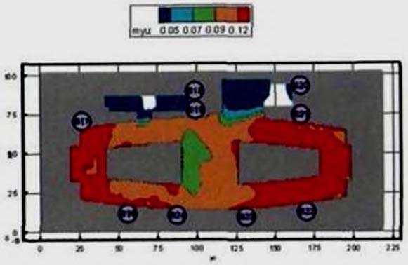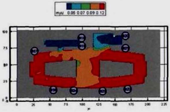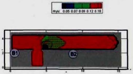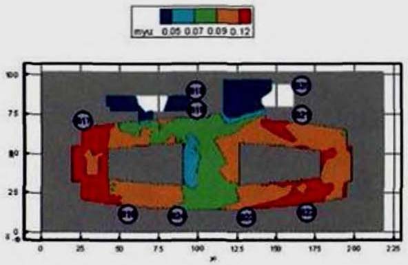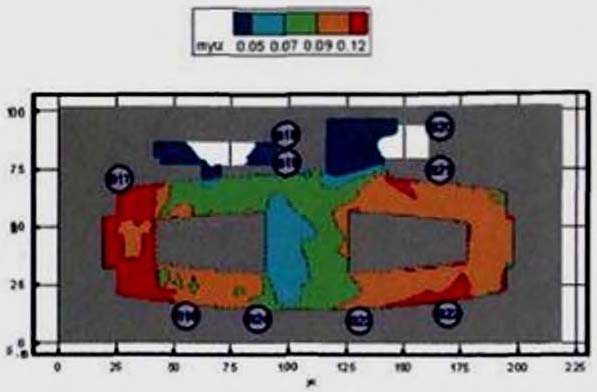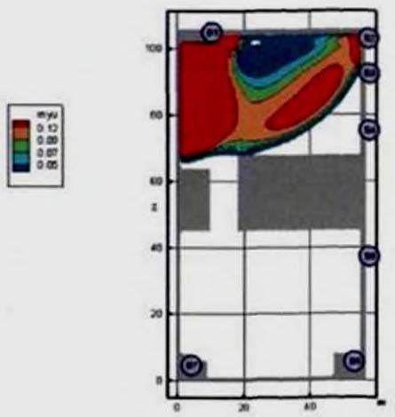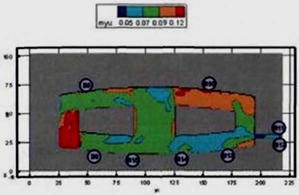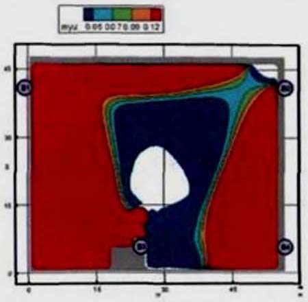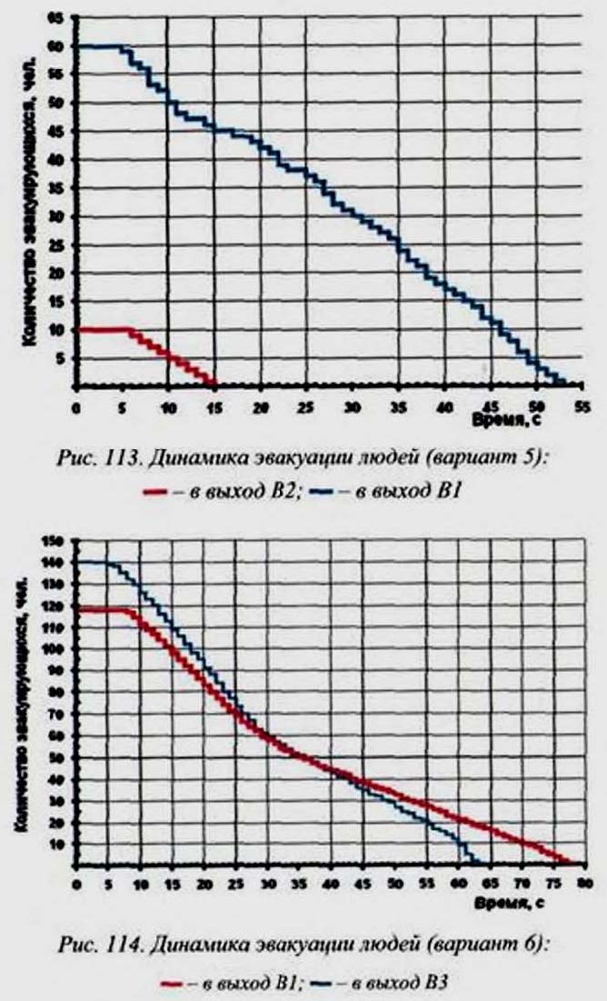 (25) полностью описывают состояние людского потока на элементарных участках и их переходы в последовательные моменты времени. Совокупность значений расчетного времени эвакуации, полученных при различных значениях V