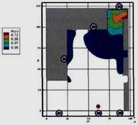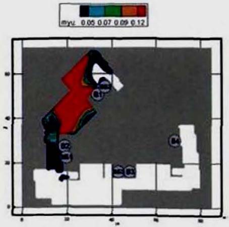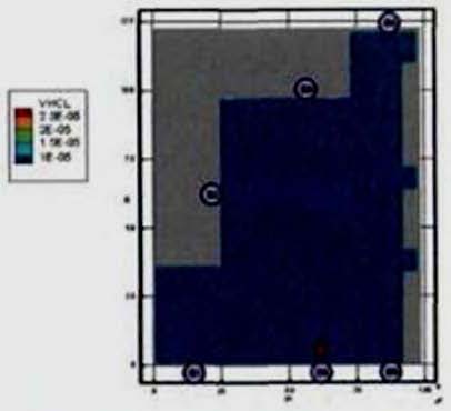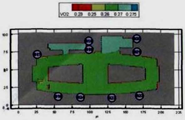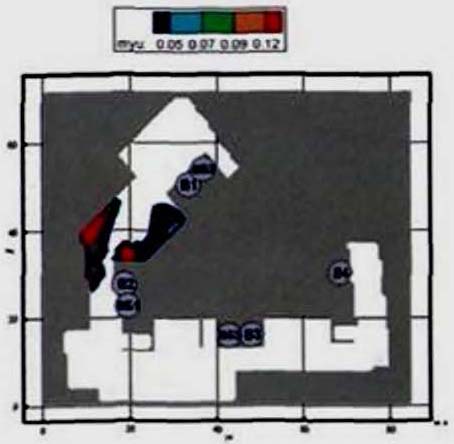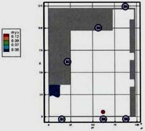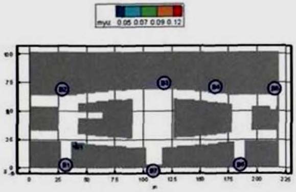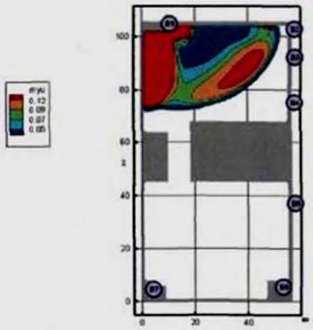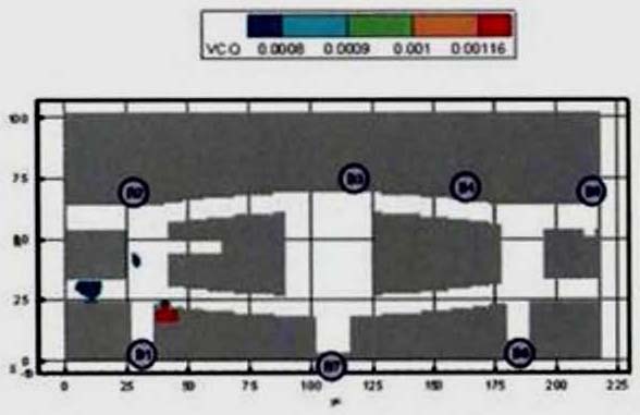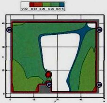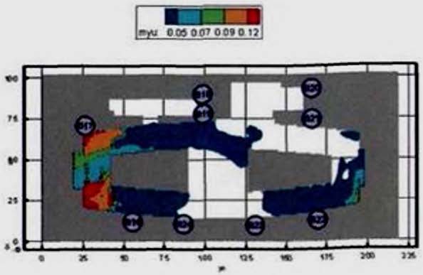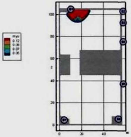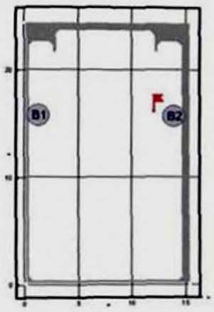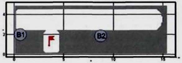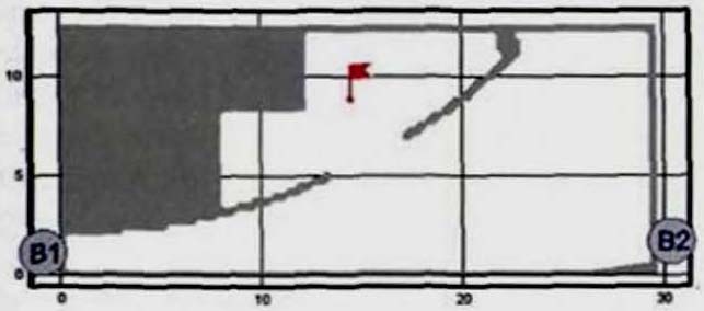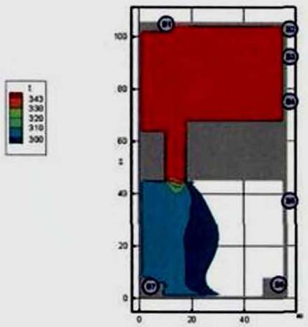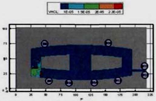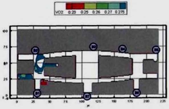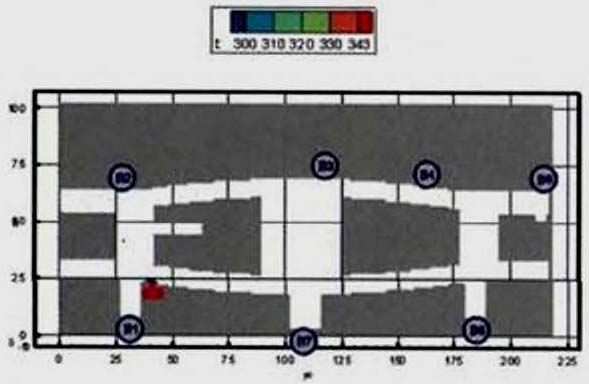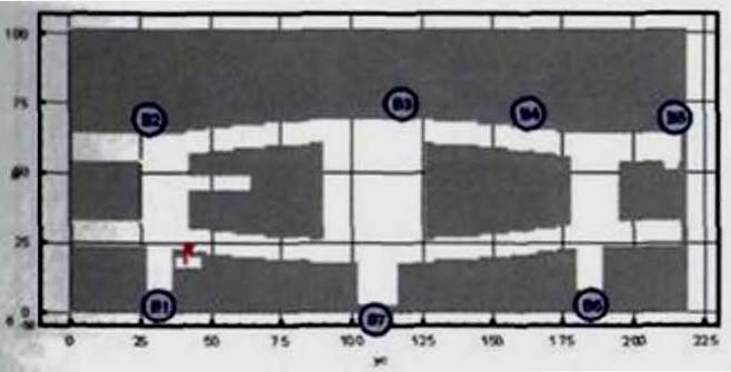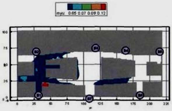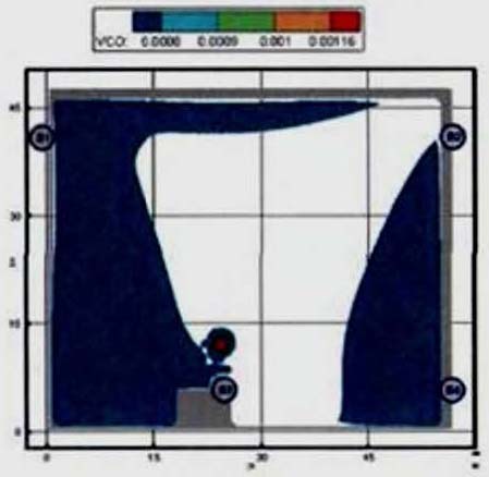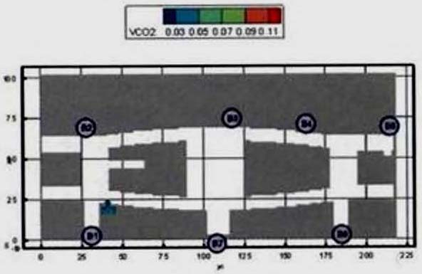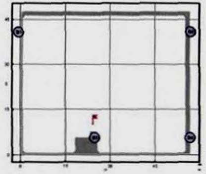 Критерий N 2. Размещение точек в местах изменения (сужение) ширины участка либо в местах перехода на другой тип участка пути (например, с горизонтального в дверной проем). В рассматриваемом примере изменение типа пути совпадает с завершением 2-го этапа эвакуации, поэтому контрольная точка размещена у выхода из коридора.