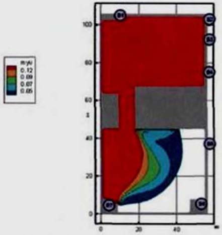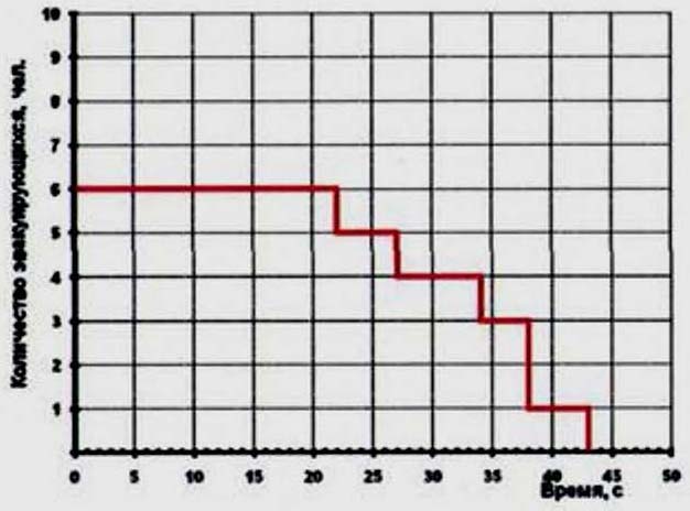Время эвакуации из помещений здания составляет: от 0,06 мин (кладовая) до 0,91 мин (обеденный зал).