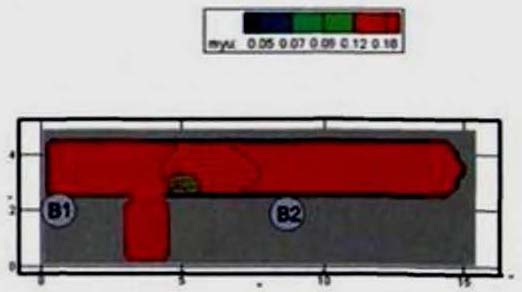 Наиболее продолжительное скопление людского потока образуется перед выходом 1 на первом этаже (на участке в осях 6-7/А-Б) и составляет 2,47 мин, что меньше критического значения, равного 6 мин.