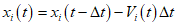 n+1 часть людей с участка i переходит на участок i+1, плотность людского потока на нем уменьшится, и часть скопившихся перед его границей людей сможет перейти на него. Доля их участия в пополнении людьми участка i в момент t