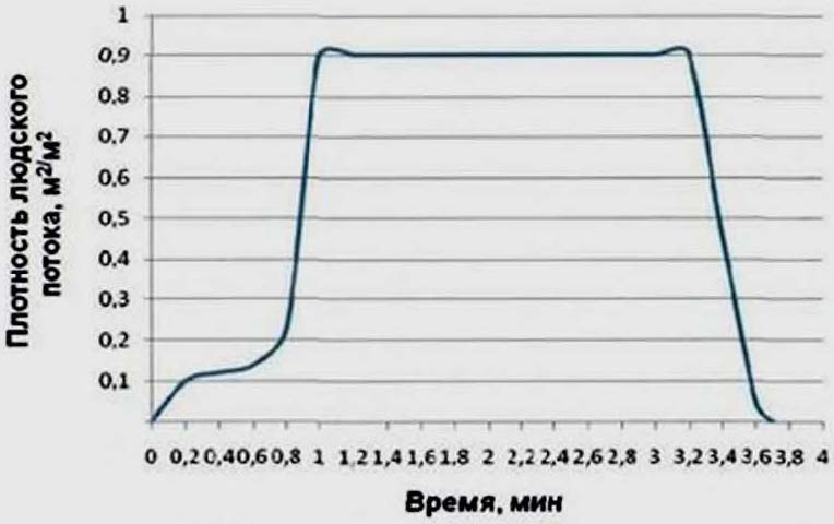 Группа мобильности эвакуирующихся М1. Площадь горизонтальной проекции людей принималась равной 0,125 м2 (взрослый человек в зимней одежде).