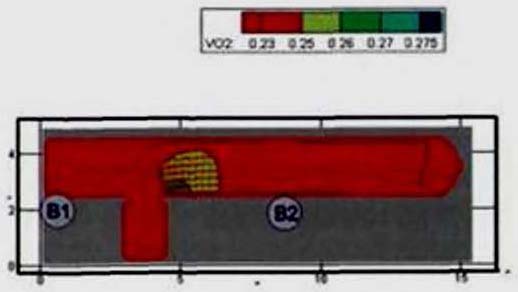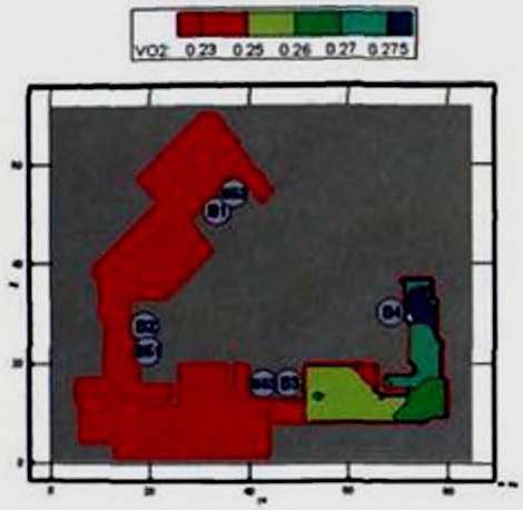 Результаты расчета показали, что время эвакуации людей из помещений находится в диапазоне от 0,06 до 0,91 мин. Время эвакуации людей с этажей здания составляет для 3-го этажа - 2,24 мин, для 2-го этажа - 1,10 мин, для 1-го этажа - 2,21 мин. Время эвакуации людей из здания определяется эвакуацией через выход 1 на первом этаже и составляет 3,69 мин.