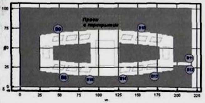 Скачкообразное изменение параметров людского потока происходит в местах слияния людских потоков, выходящих с этажа и спускающихся с выше расположенных этажей. В связи с этим контрольные точки размещены на лестничных площадках на уровне этажей.