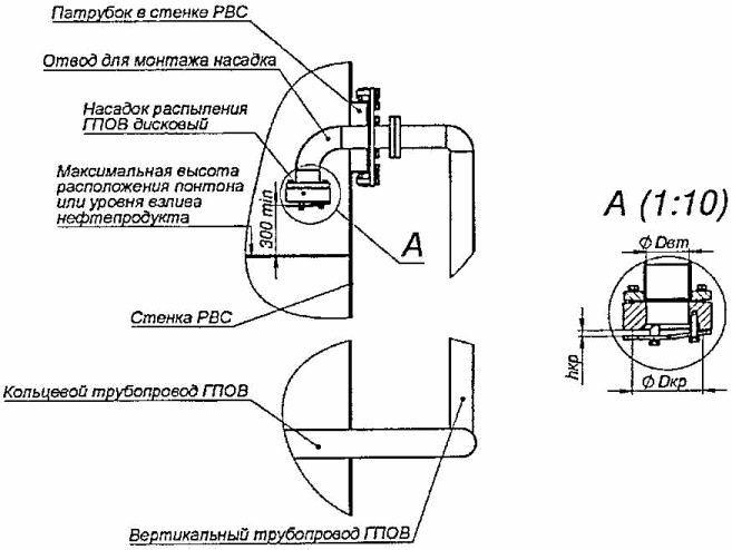 Г.15. Конструкция и крепление подающей трубы должны исключать срыв или ее повреждение при возникновении пожара в резервуаре.