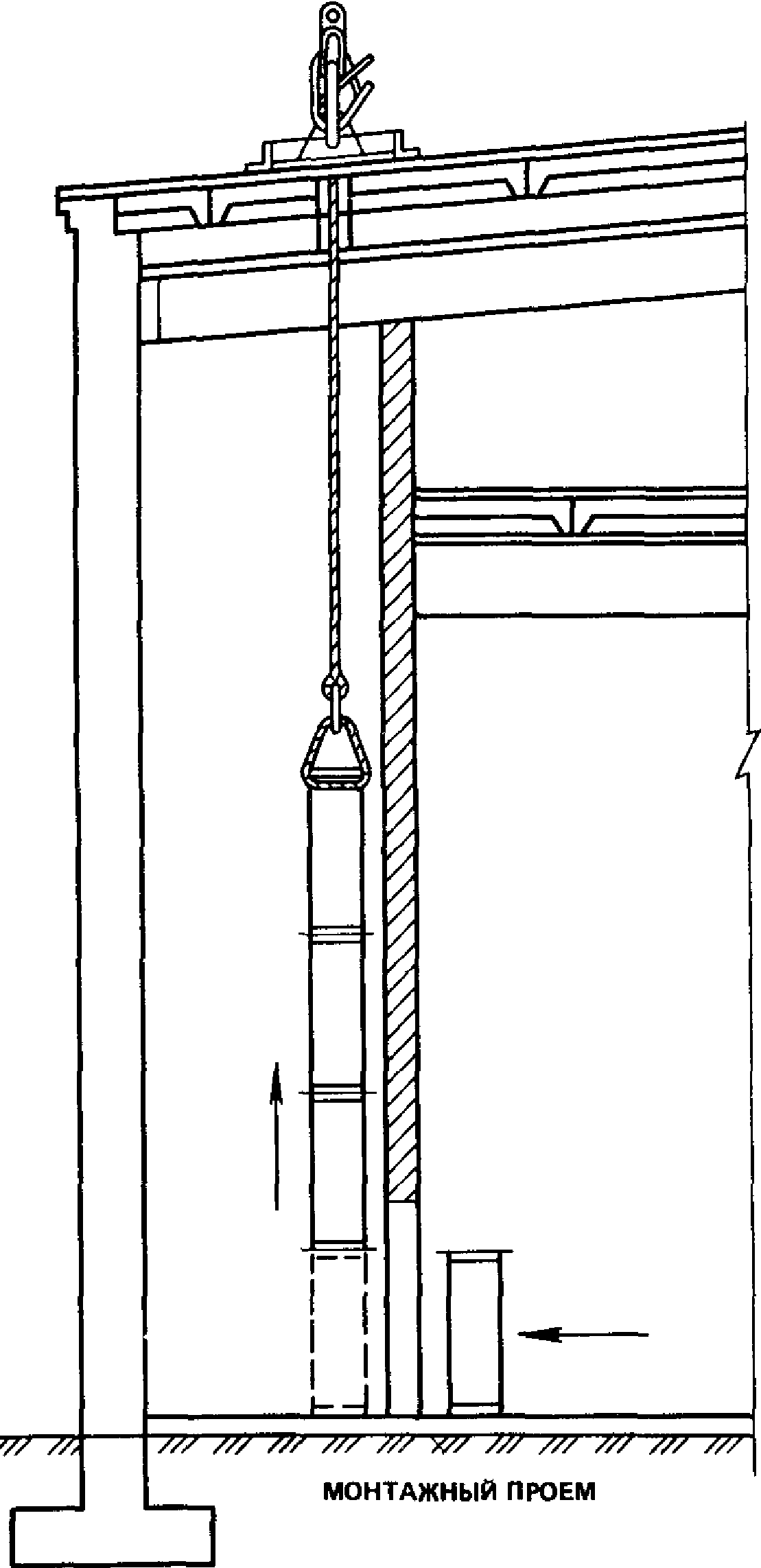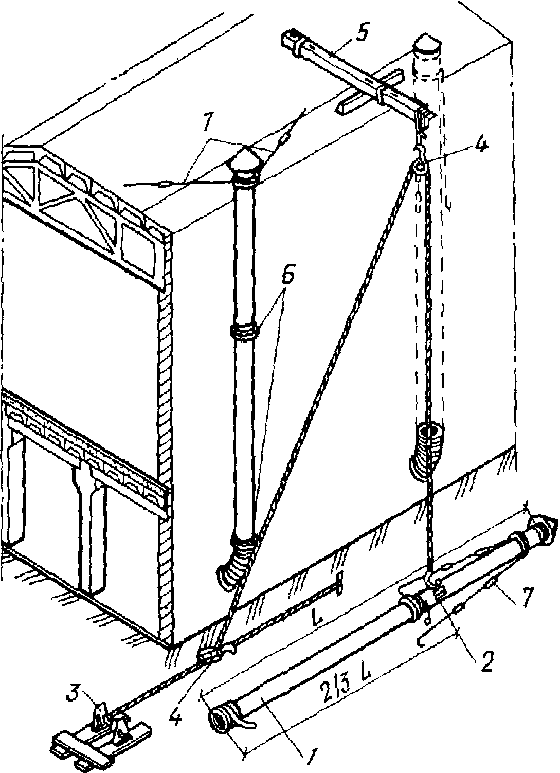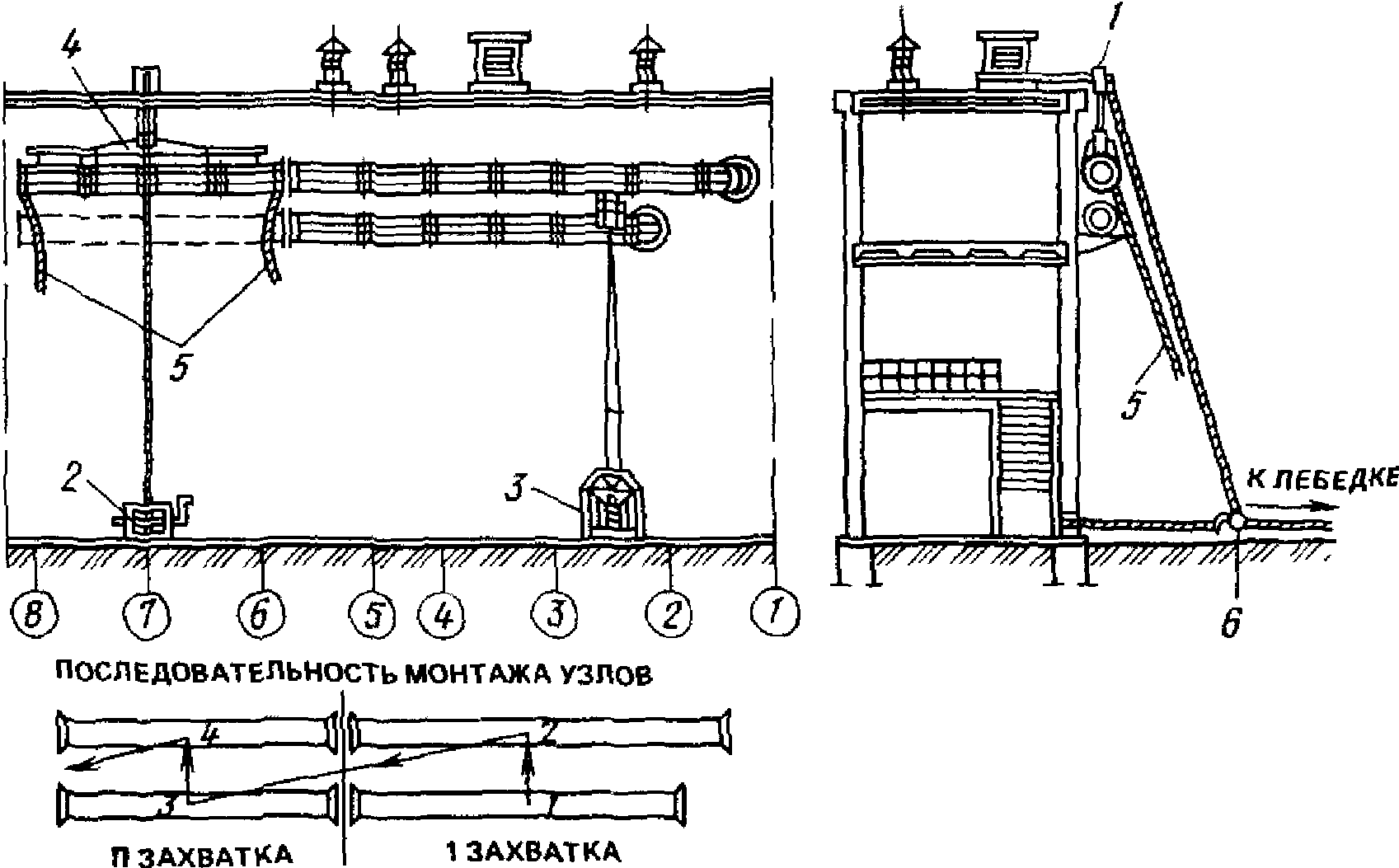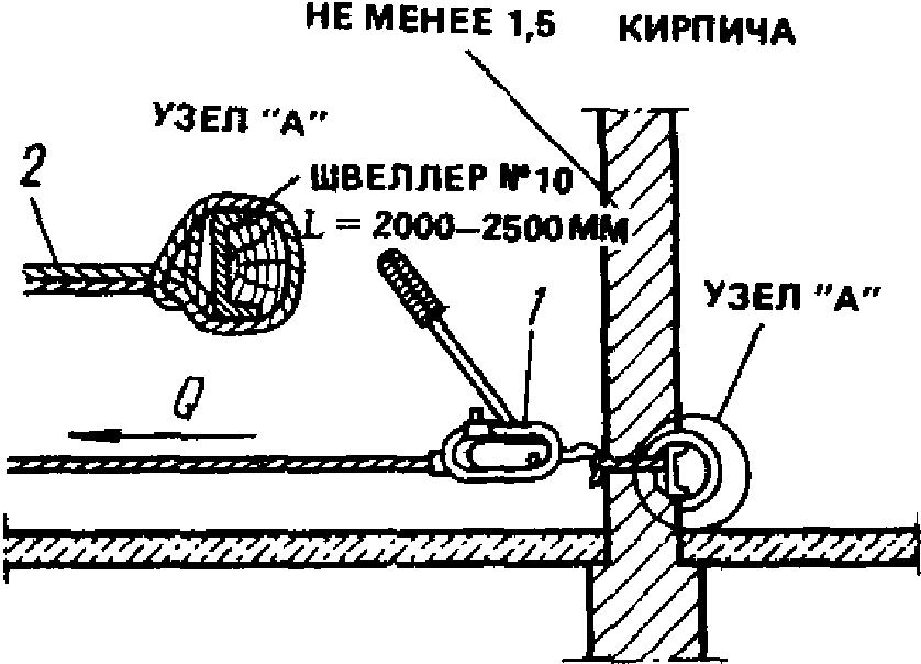 1 - монтажно-тяговый механизм; 2 - инвентарный строп;