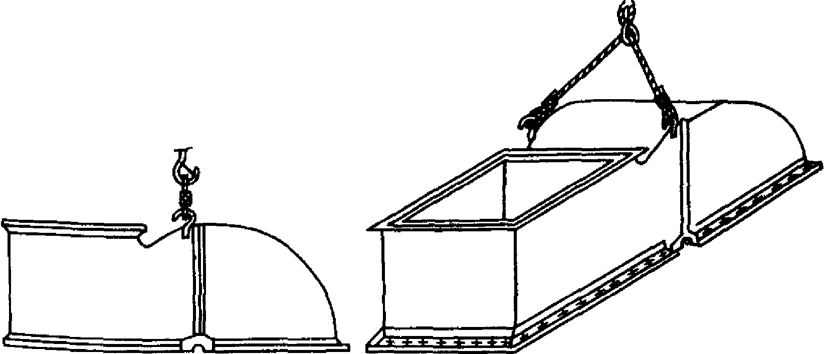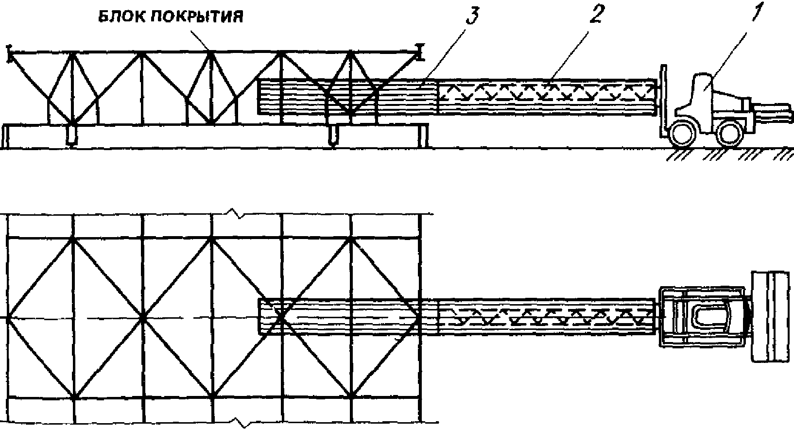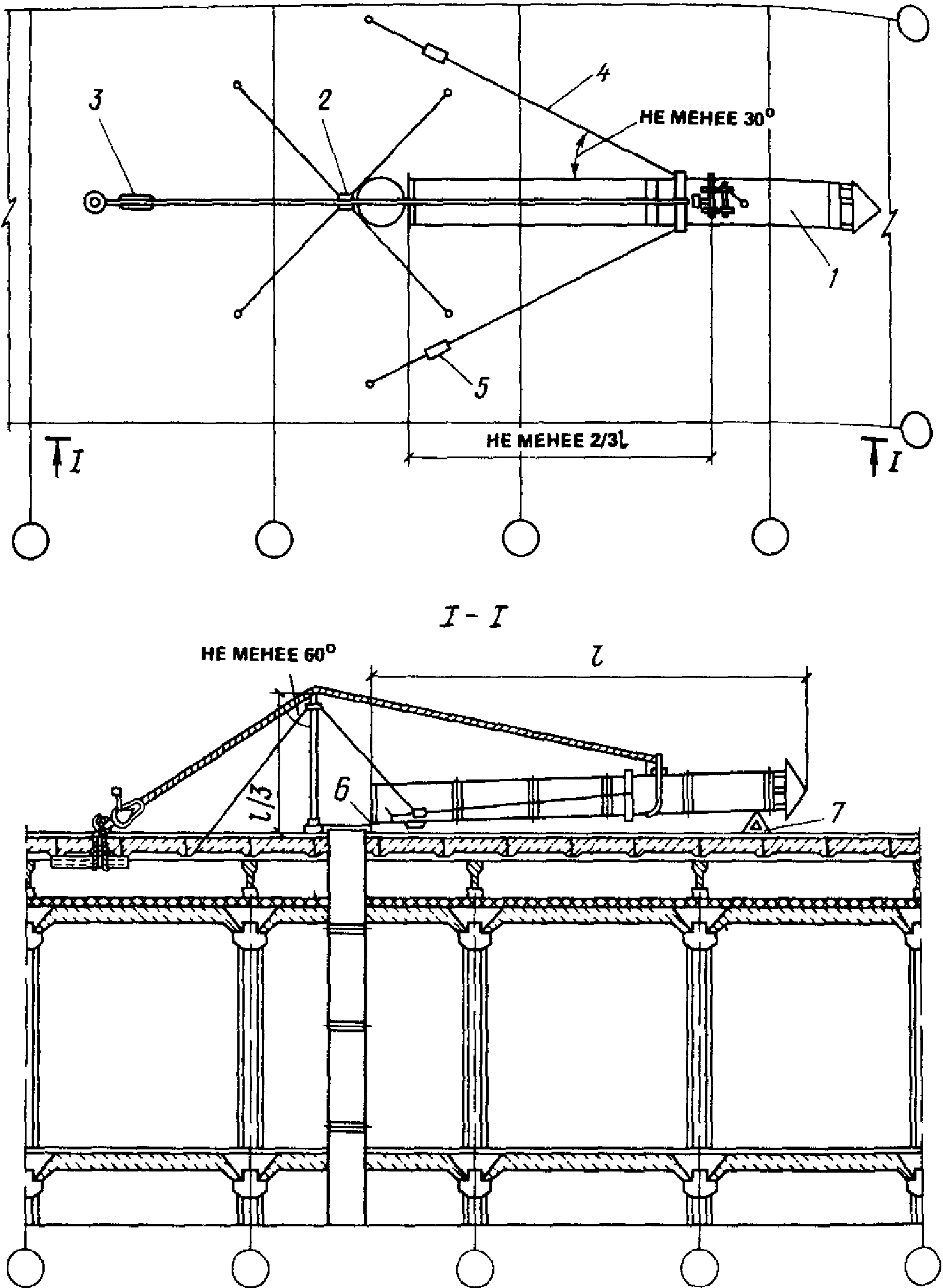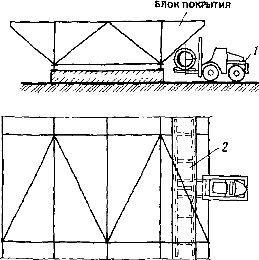 1 - монтажно-тяговый механизм; 2 - инвентарный строп;