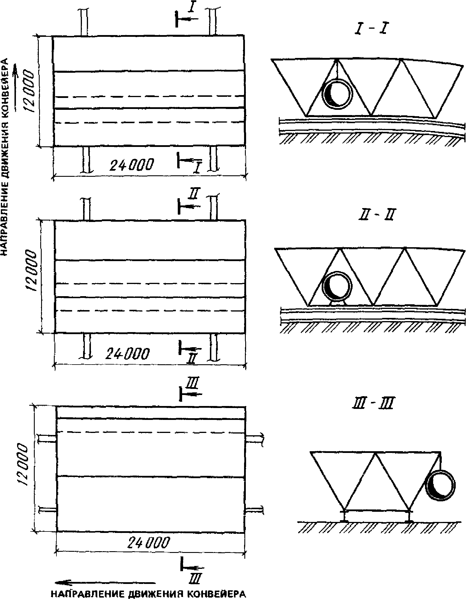 б - на выносных опорах; в - 18 м; г - 18 м с гуськом 3 м