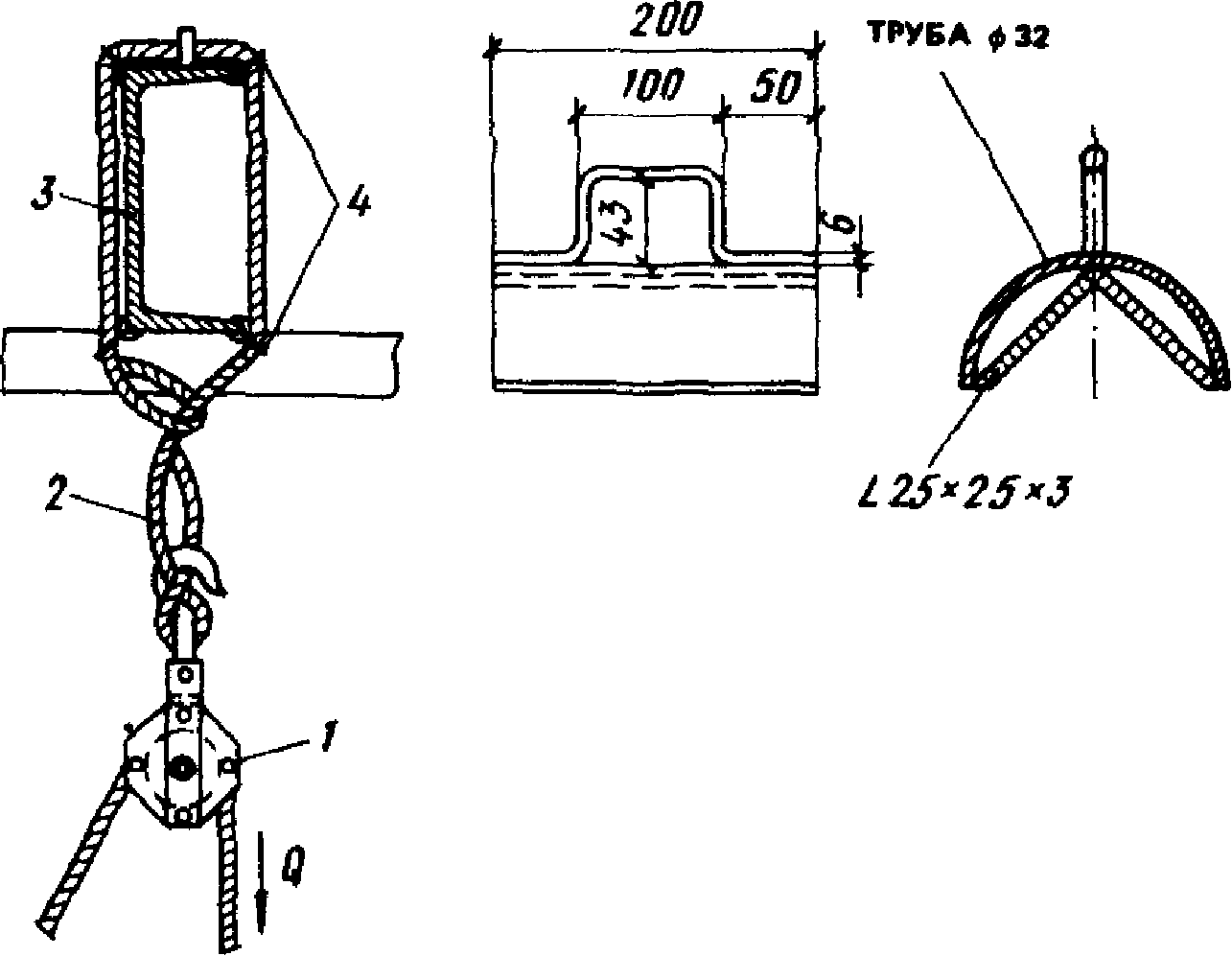 к консоли; 1 - блок; 2 - строп из стального каната;