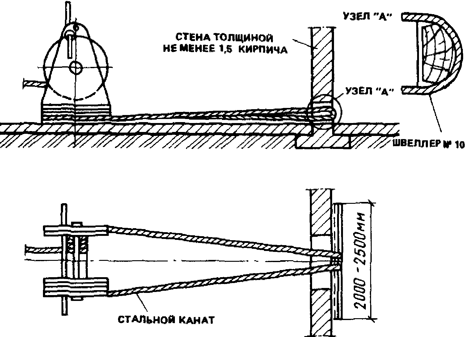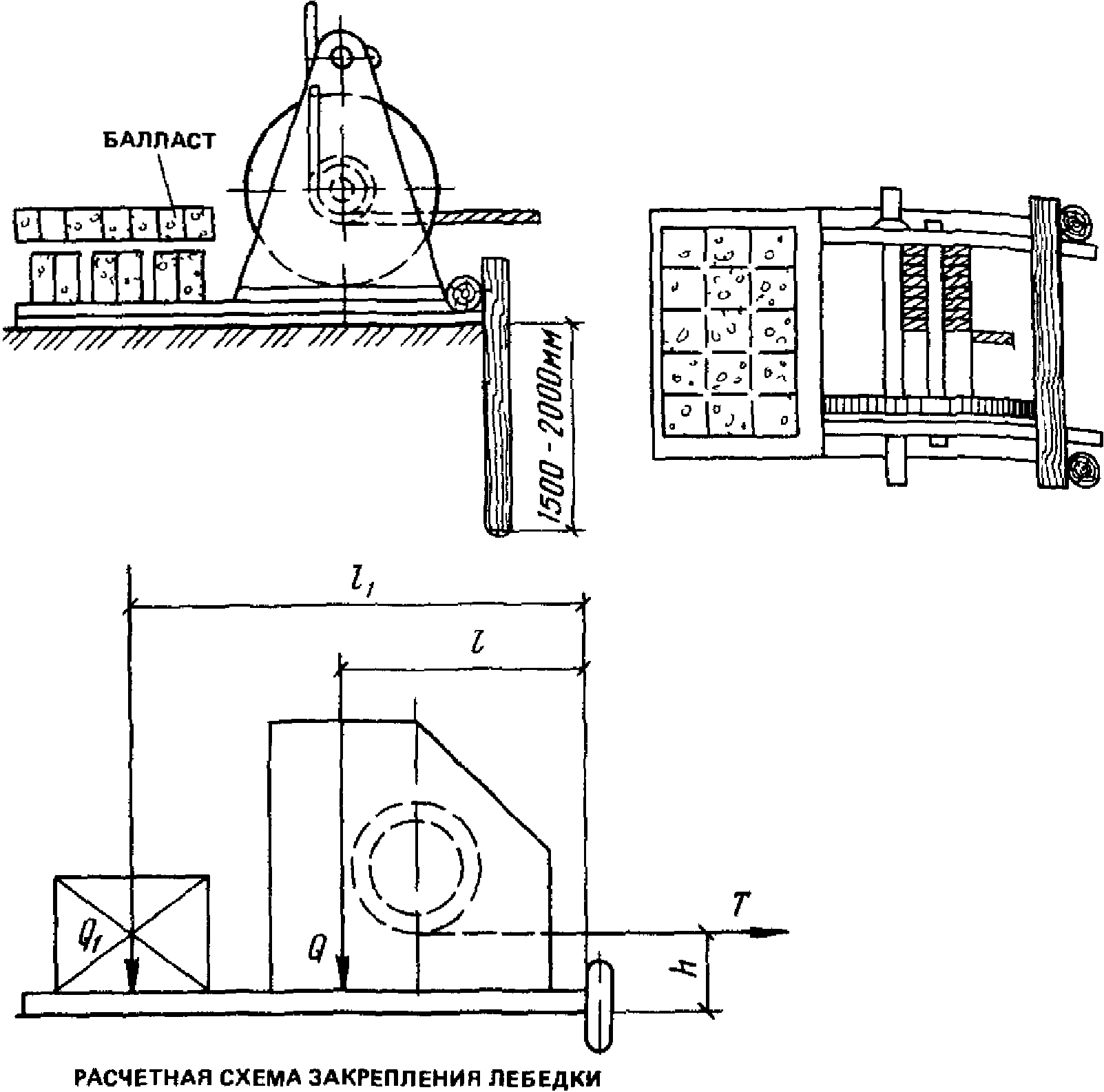 ТИПОВЫЕ СХЕМЫ УСТАНОВКИ И КРЕПЛЕНИЯ ЛЕБЕДОК И БЛОКОВ