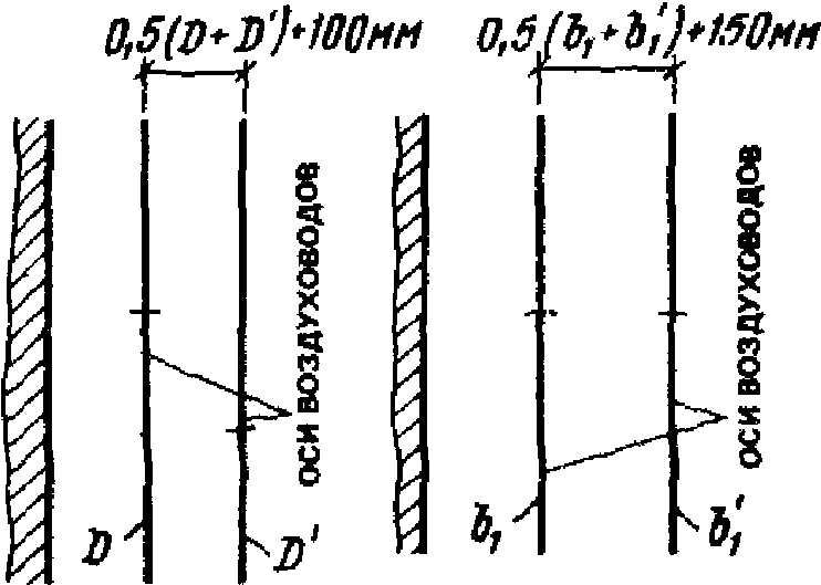 отметки уровня оси круглых и низа прямоугольных воздуховодов;