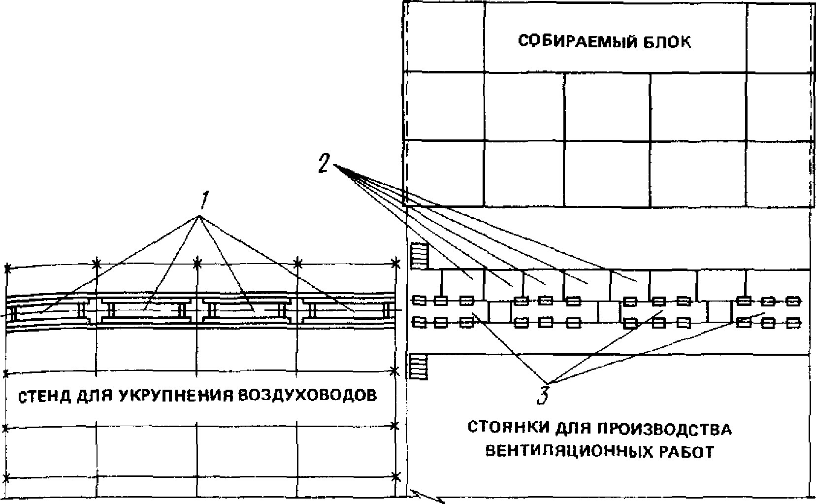 размерные привязки установок систем и воздуховодов к координационным осям или элементам конструкций;