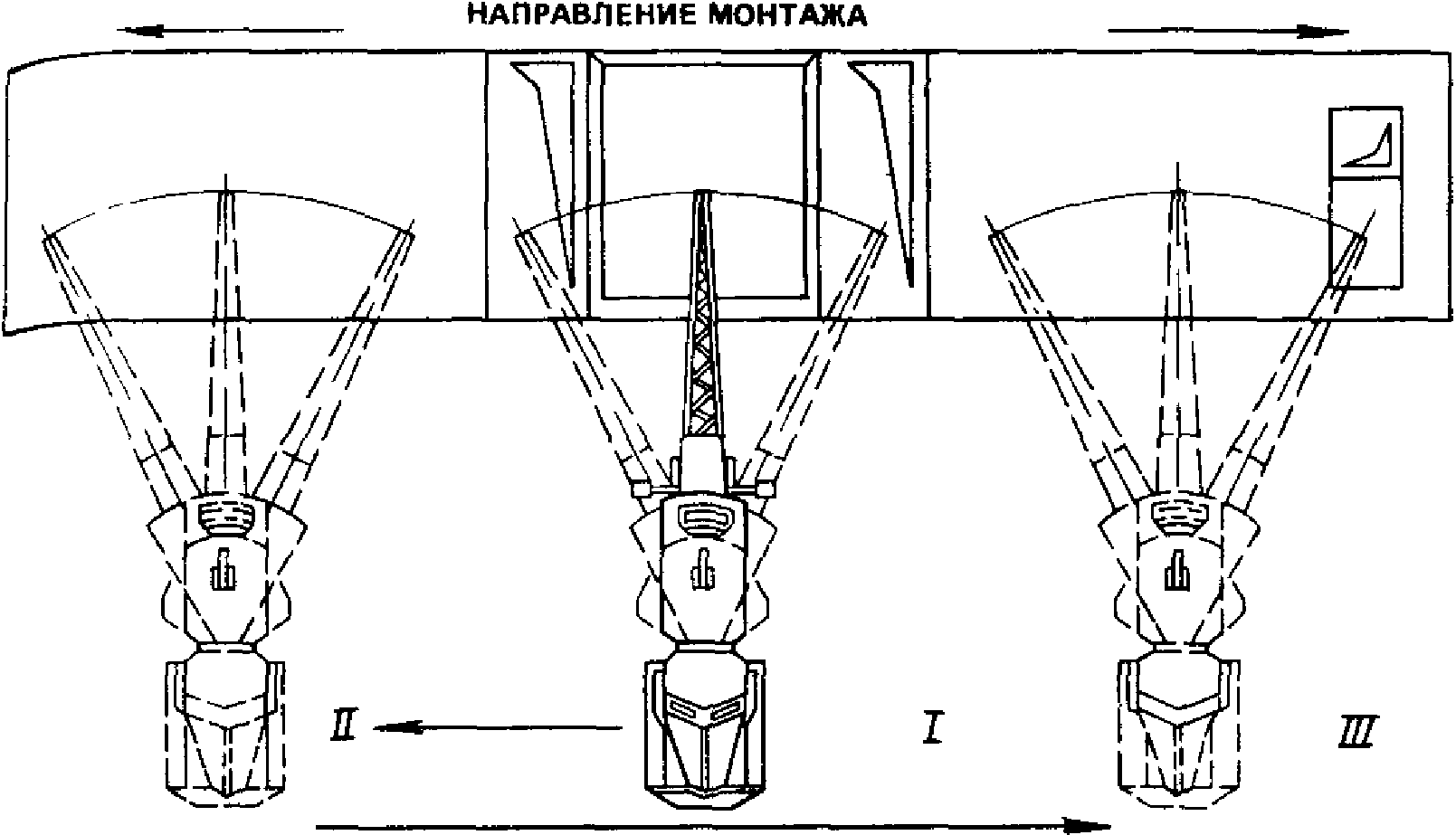 опорах; в - со стрелой 23 м с гуськом 3 м;